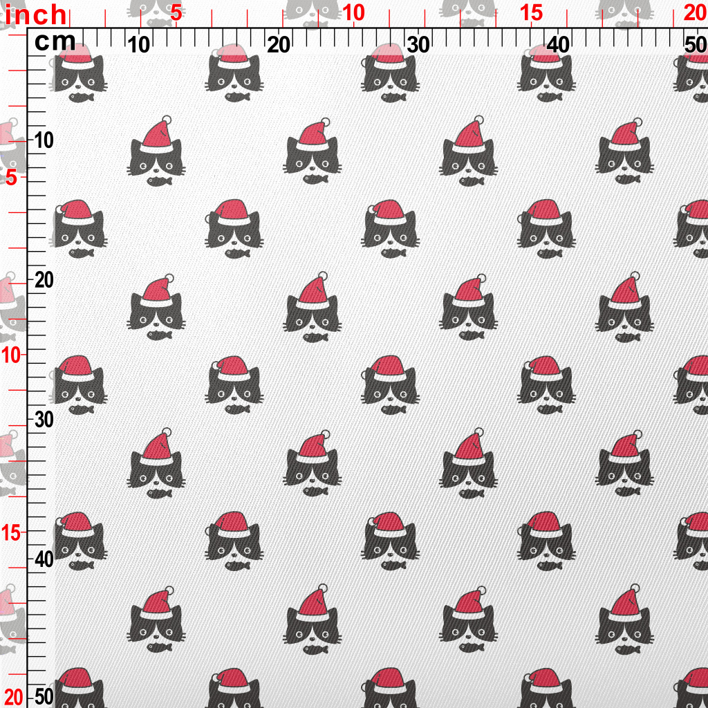 魚大餐聖誕小貓厚棉布(幅寬150公分)