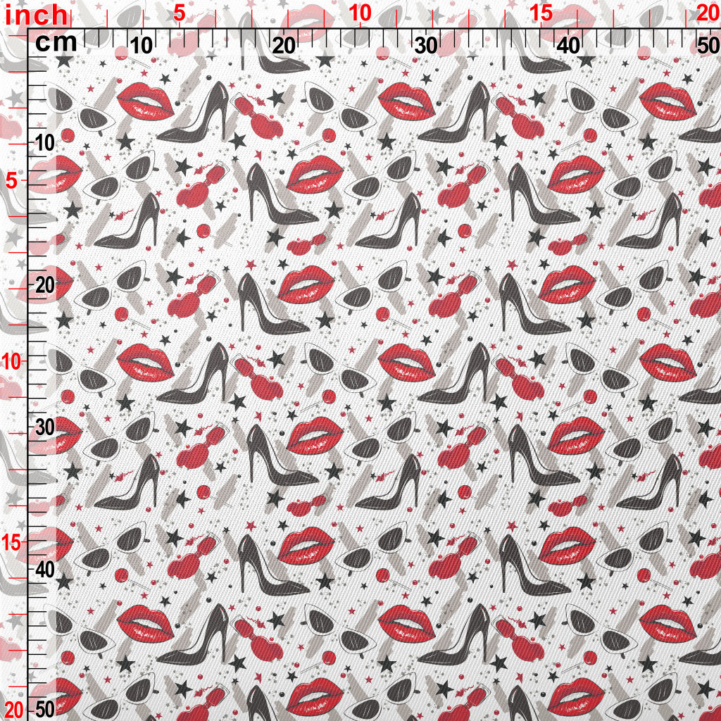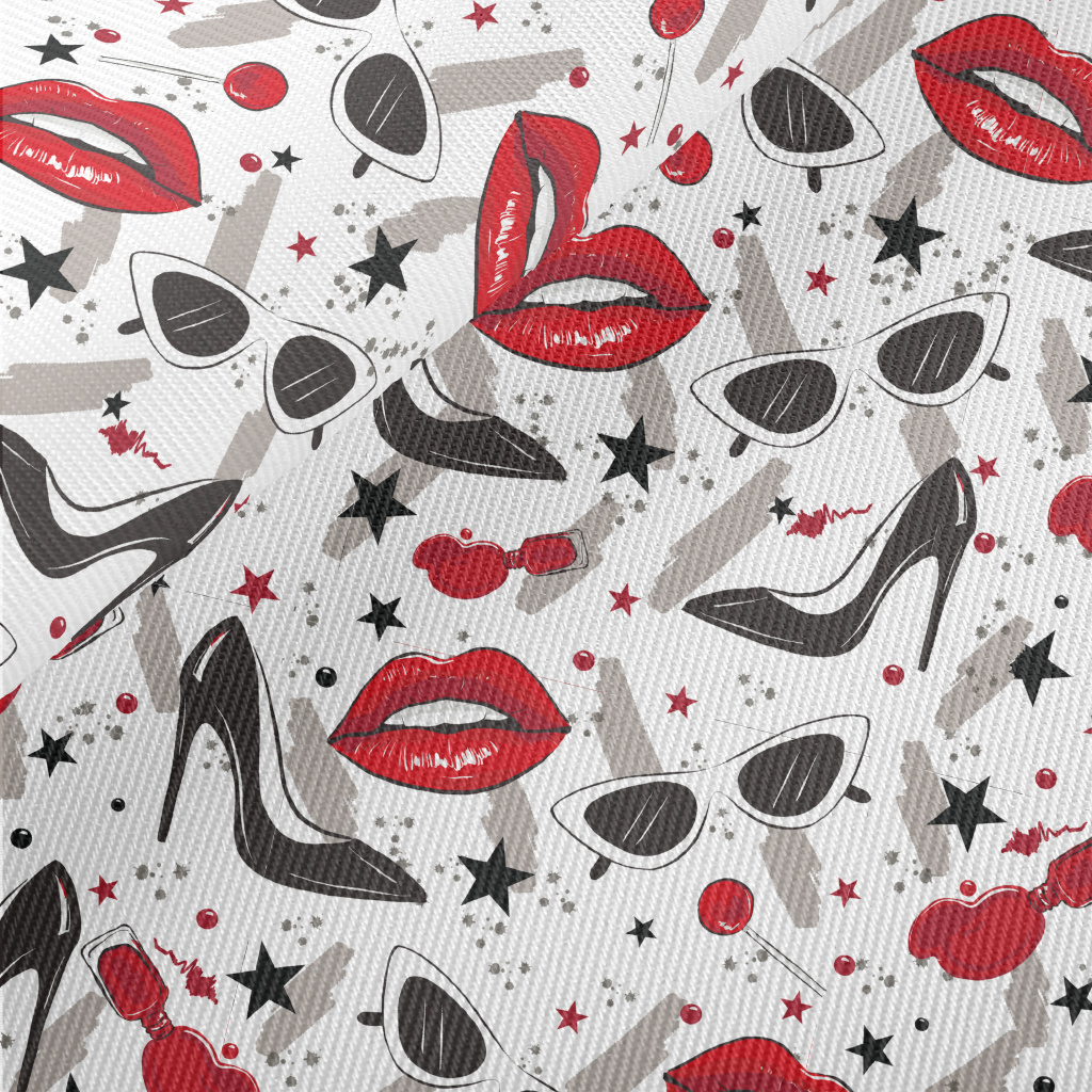 紅脣高跟鞋墨鏡厚棉布(幅寬150公分)