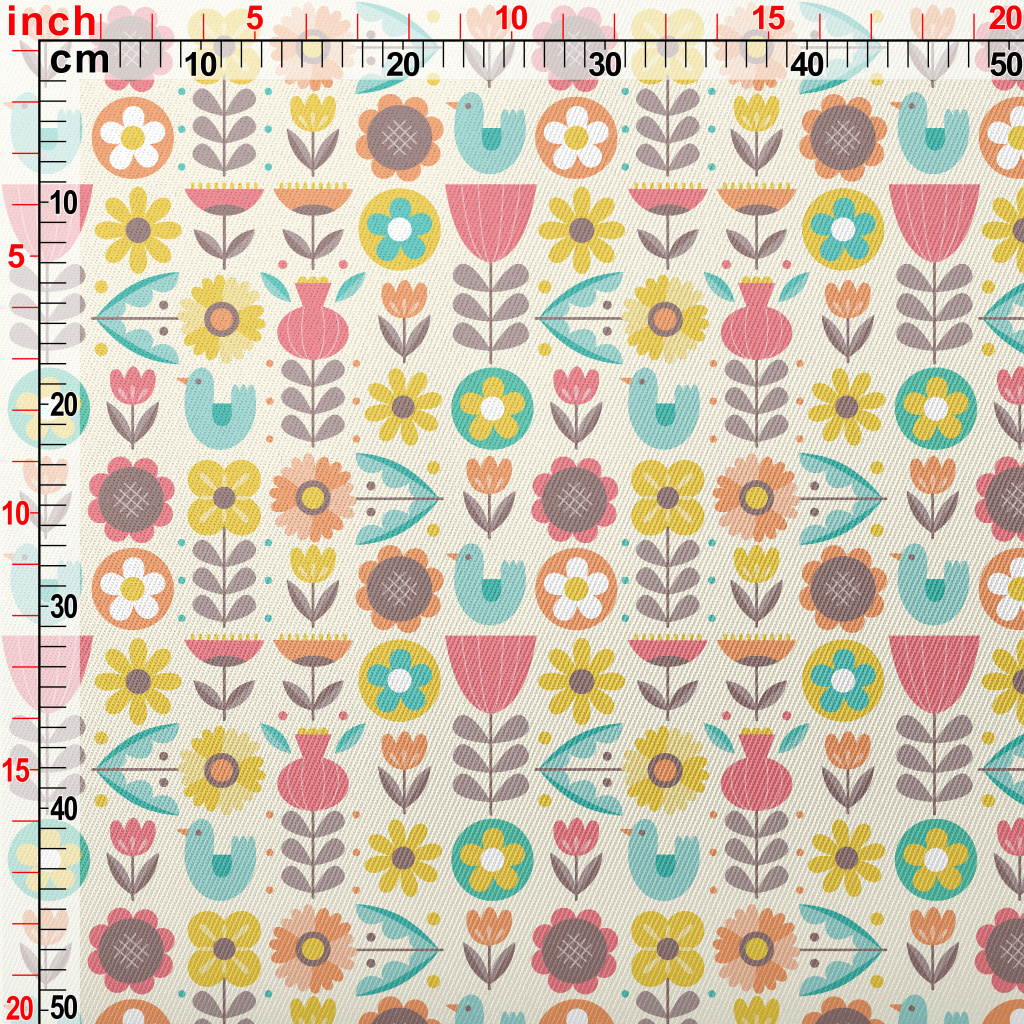 逗趣繽紛花朵厚棉布(幅寬150公分)