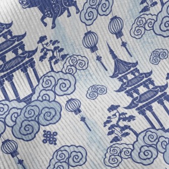 中國傳統建築物與牛厚棉布(幅寬150公分)
