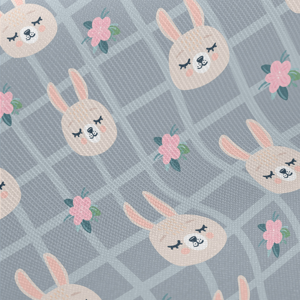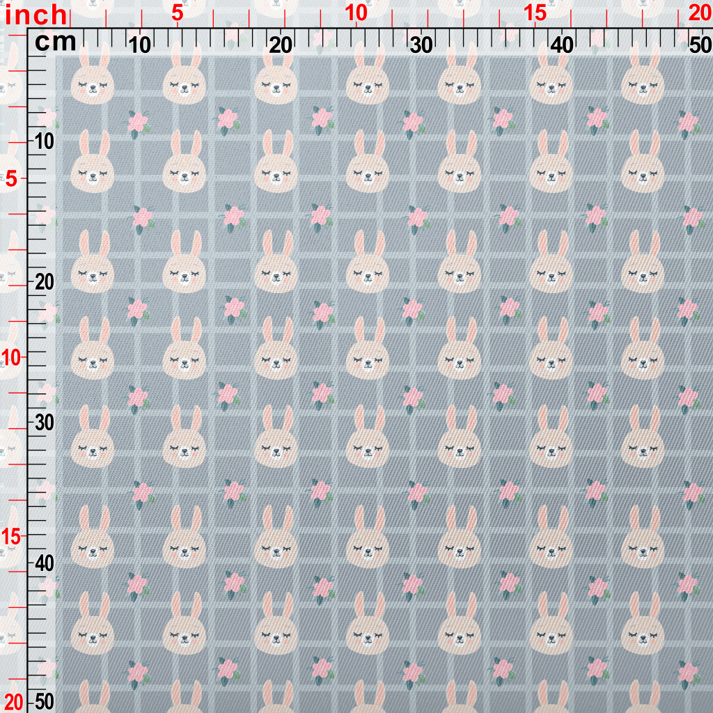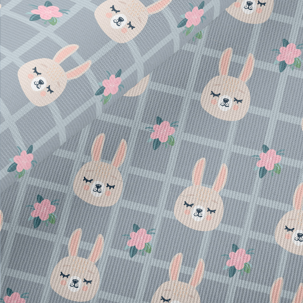 柔和格子小兔子厚棉布(幅寬150公分)