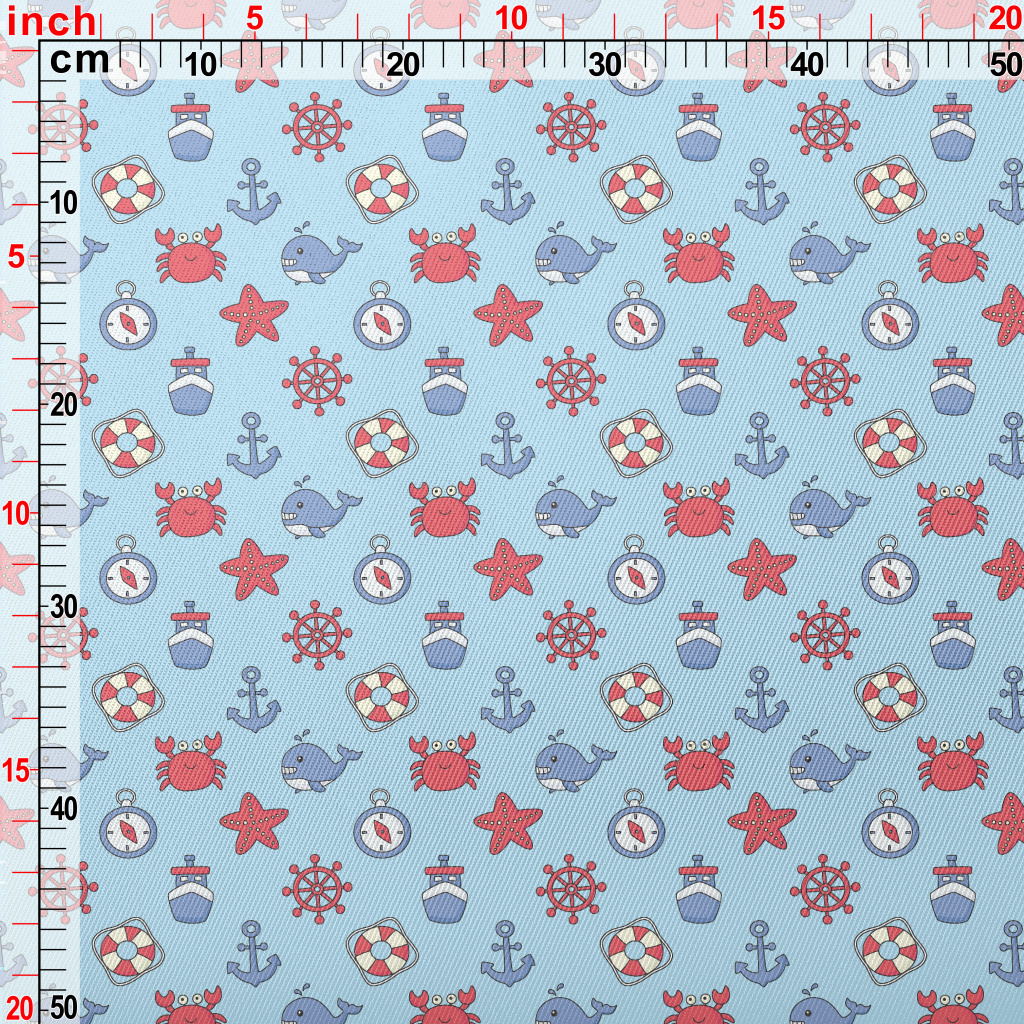 俏皮螃蟹與鯨魚厚棉布(幅寬150公分)
