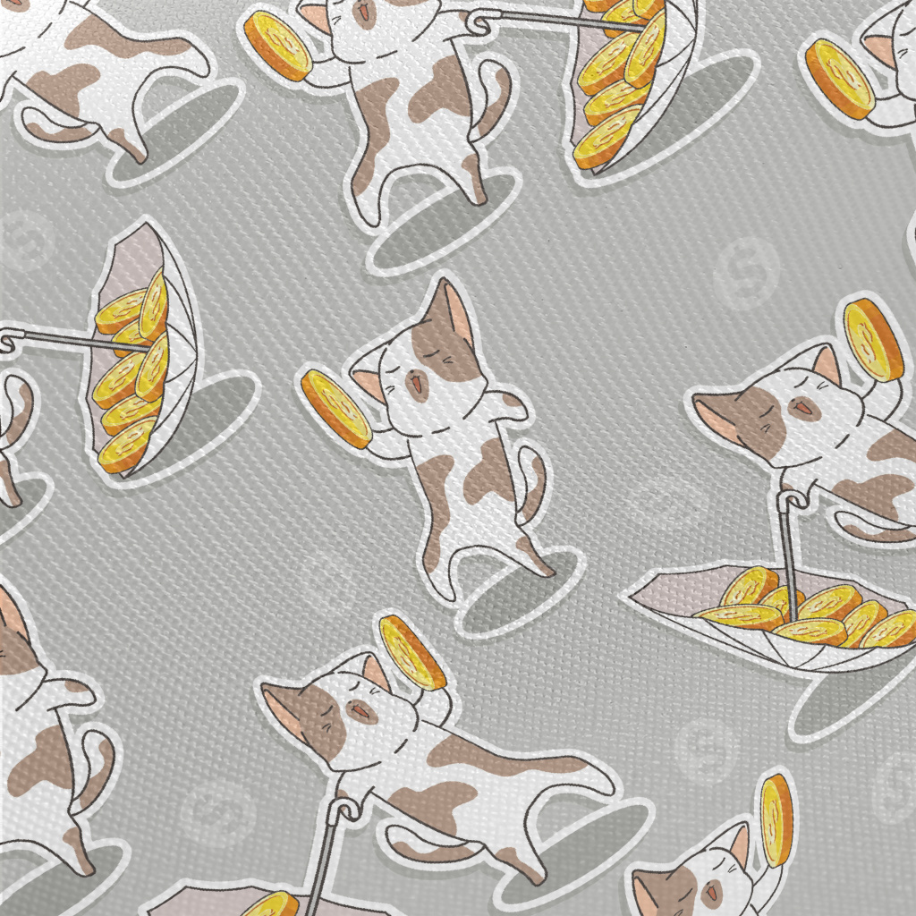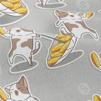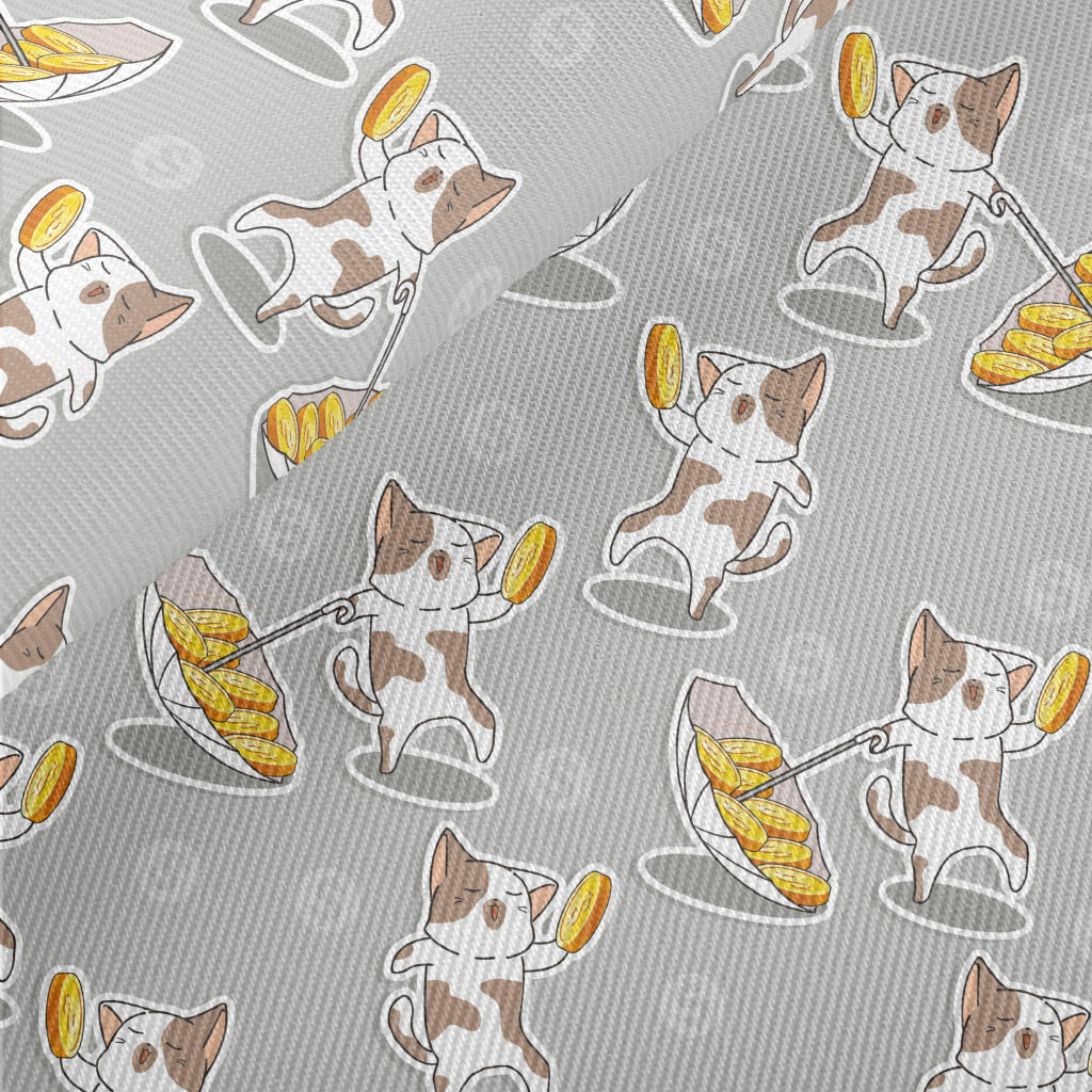 跳舞錢幣貓咪厚棉布(幅寬150公分)