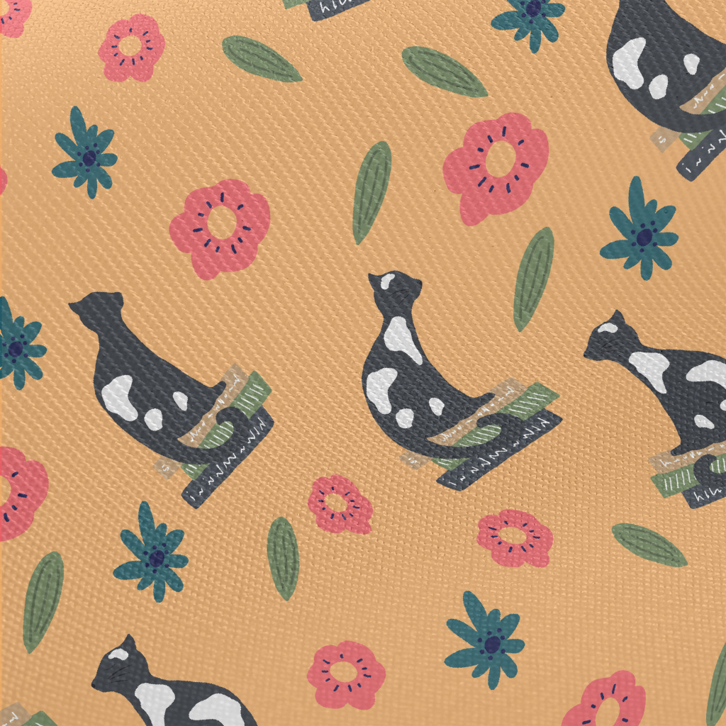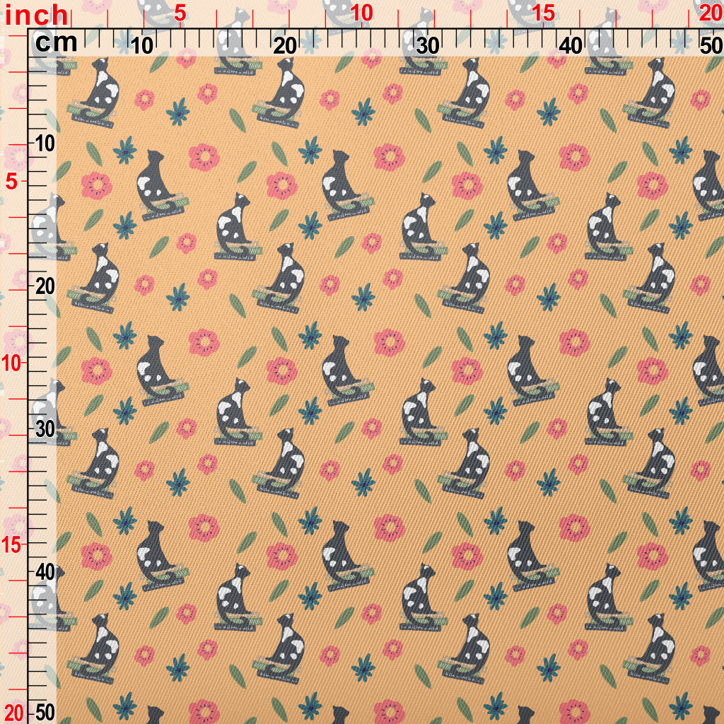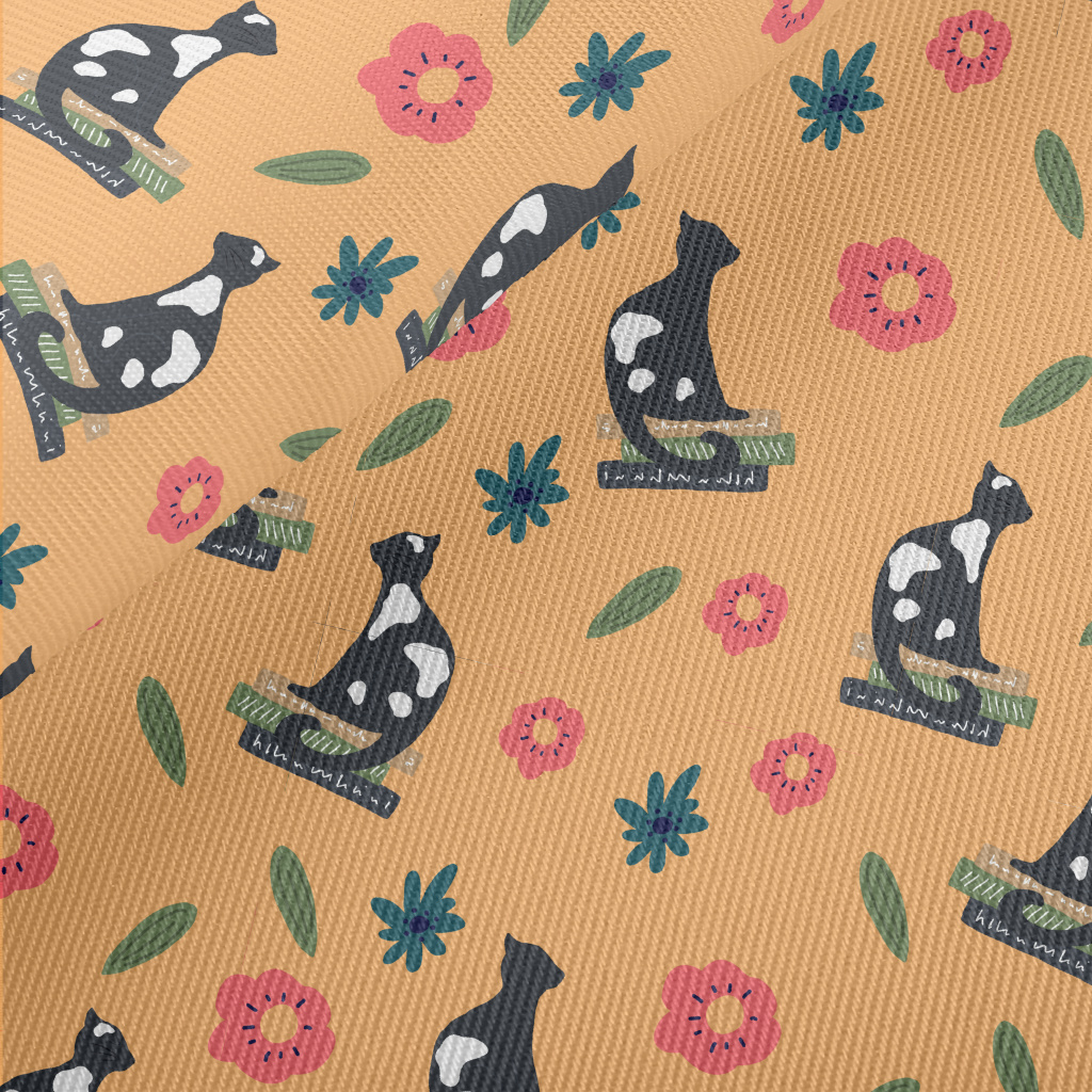 優雅貓與花朵厚棉布(幅寬150公分)