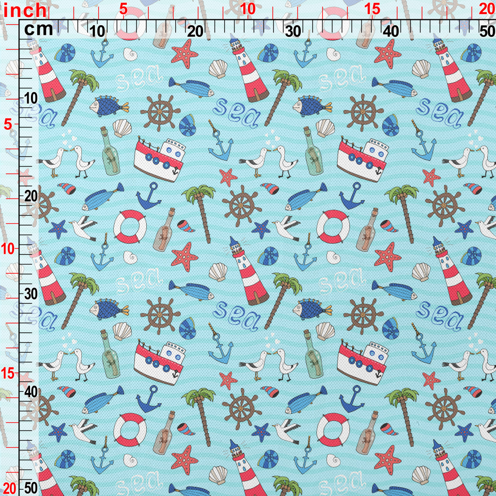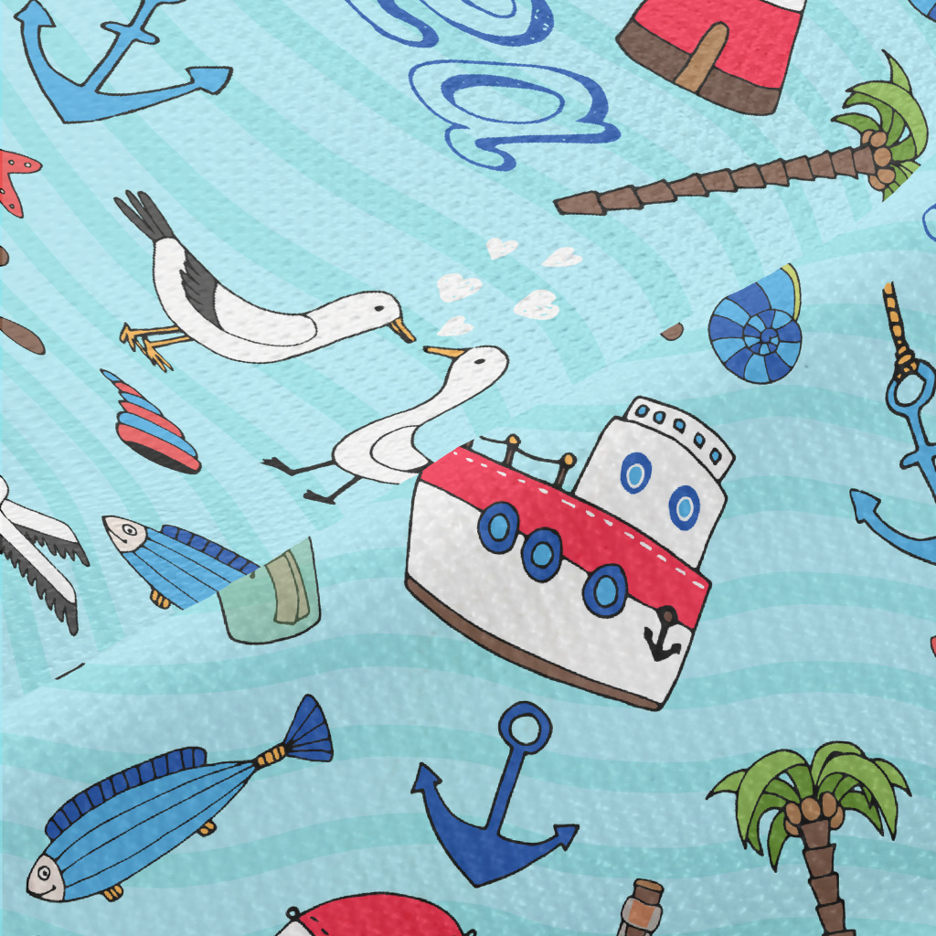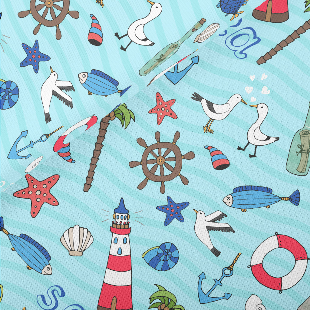 帆船燈塔海鷗魚高爾布(幅寬180公分)