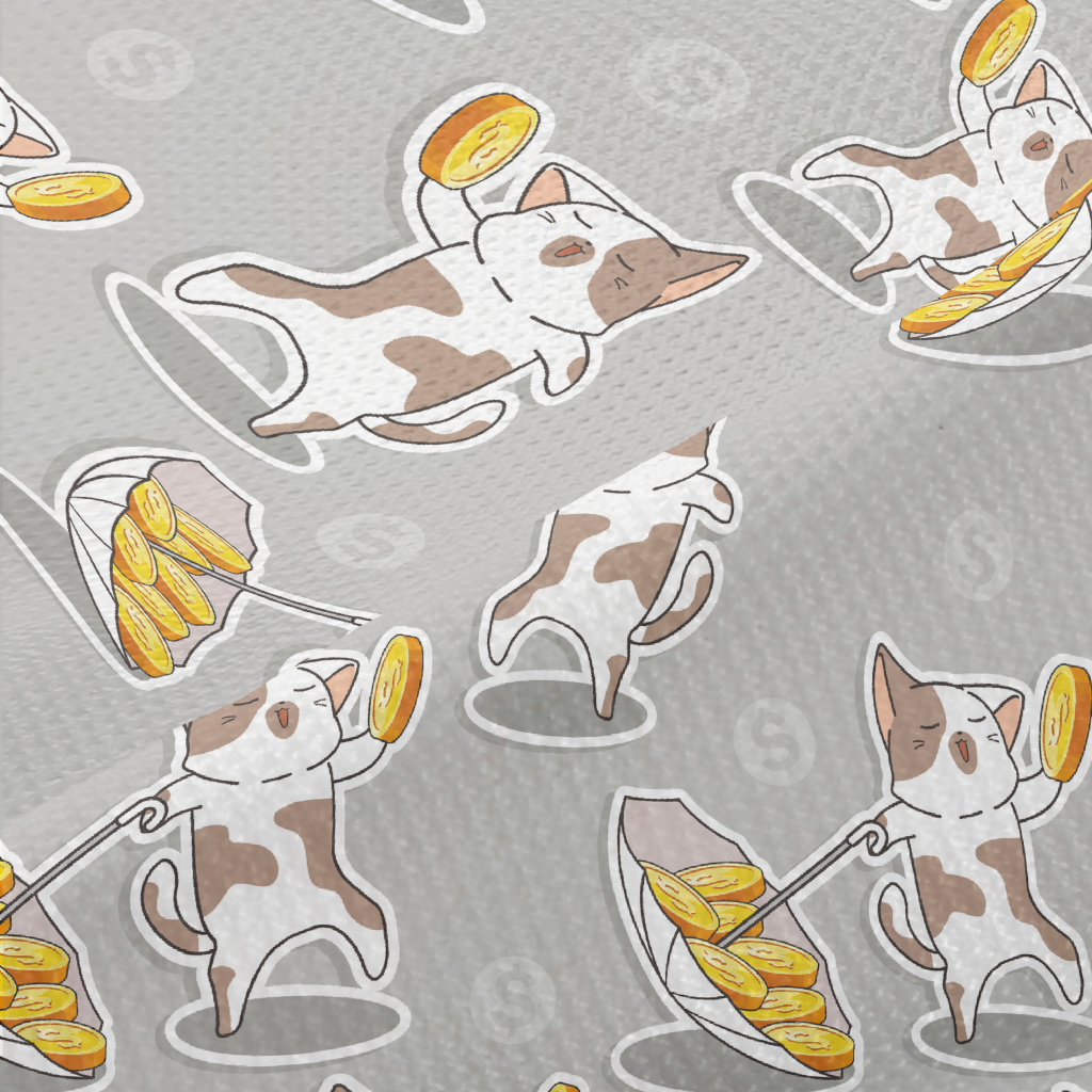 跳舞錢幣貓咪高爾布(幅寬180公分)
