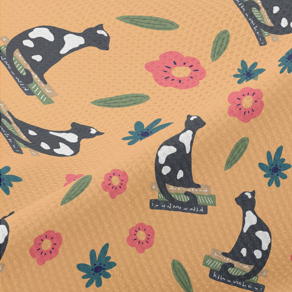 優雅貓與花朵高爾布(幅寬180公分)