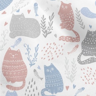 慵懶圖騰貓咪春亞紡(幅寬160公分)
