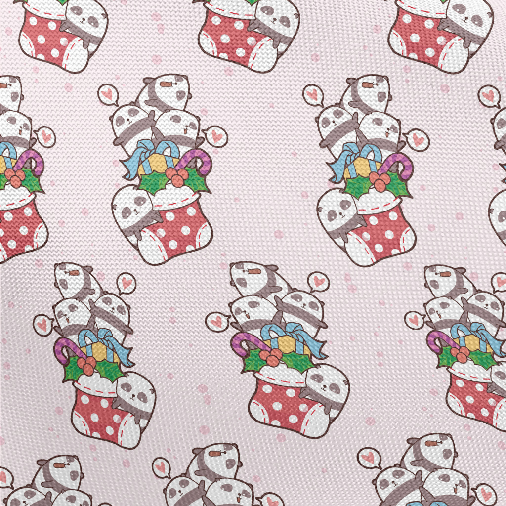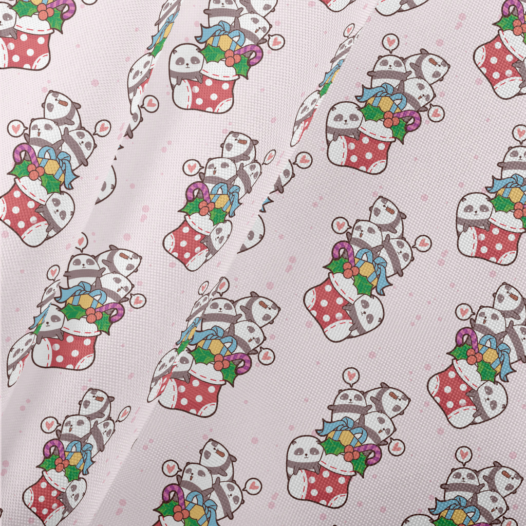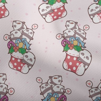 歡樂貓熊聖誕襪春亞紡(幅寬160公分)