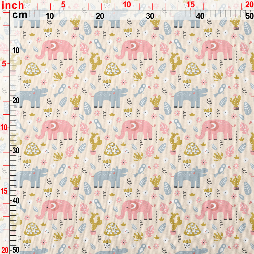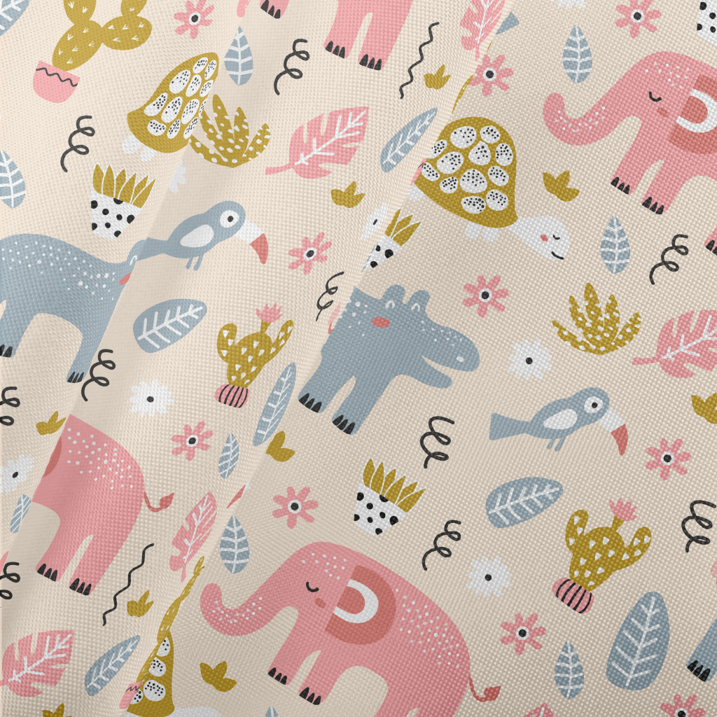 卡通烏龜大象大嘴鳥春亞紡(幅寬160公分)