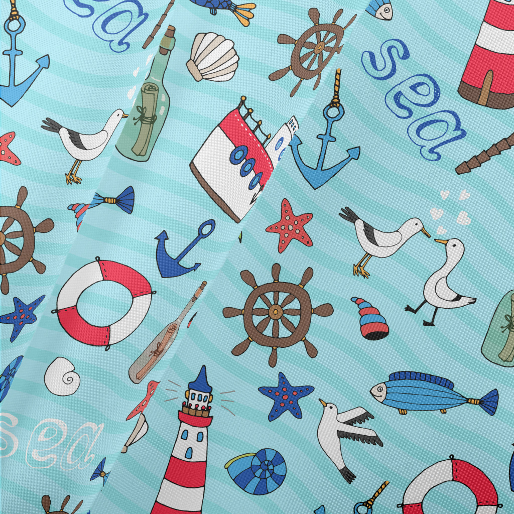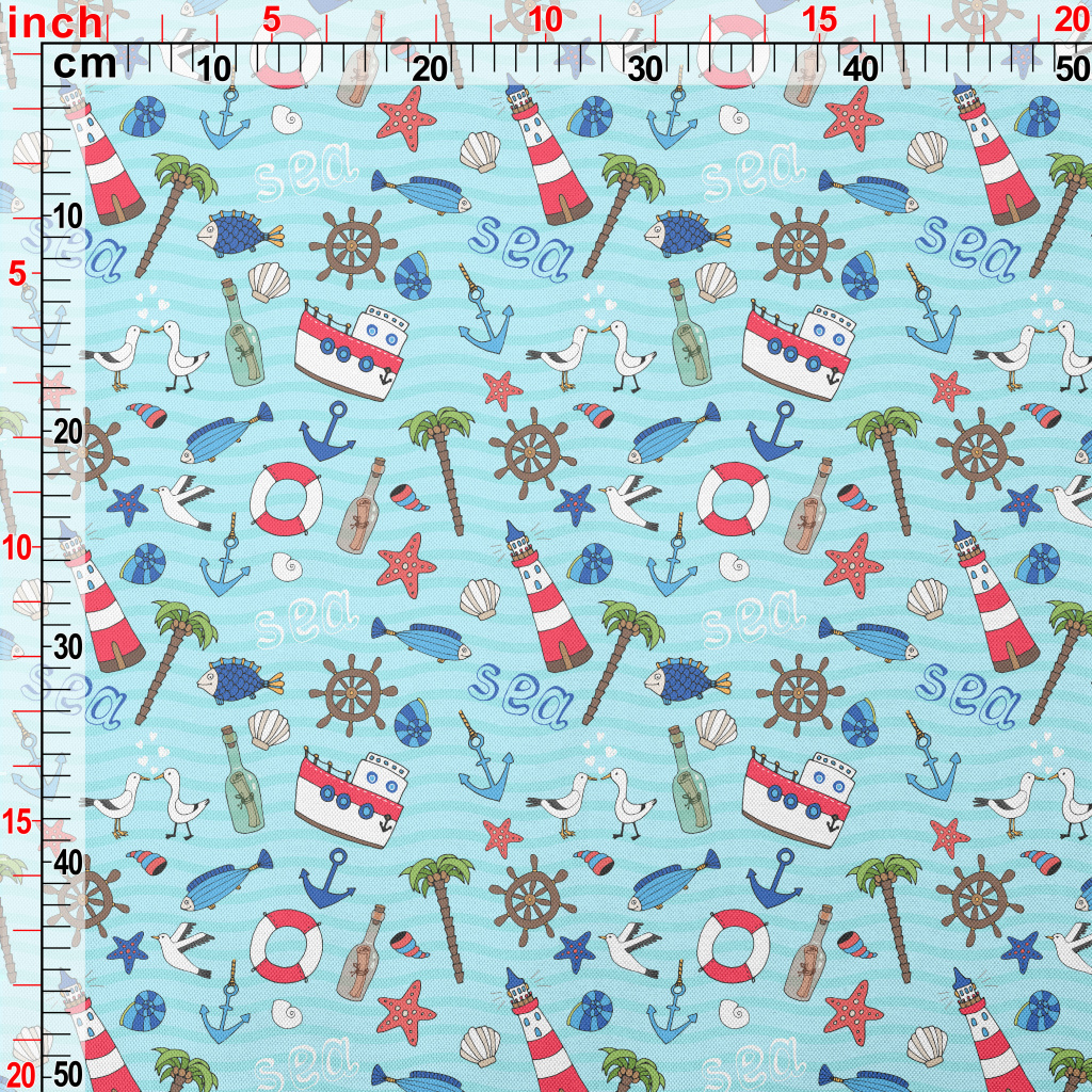 帆船燈塔海鷗魚春亞紡(幅寬160公分)