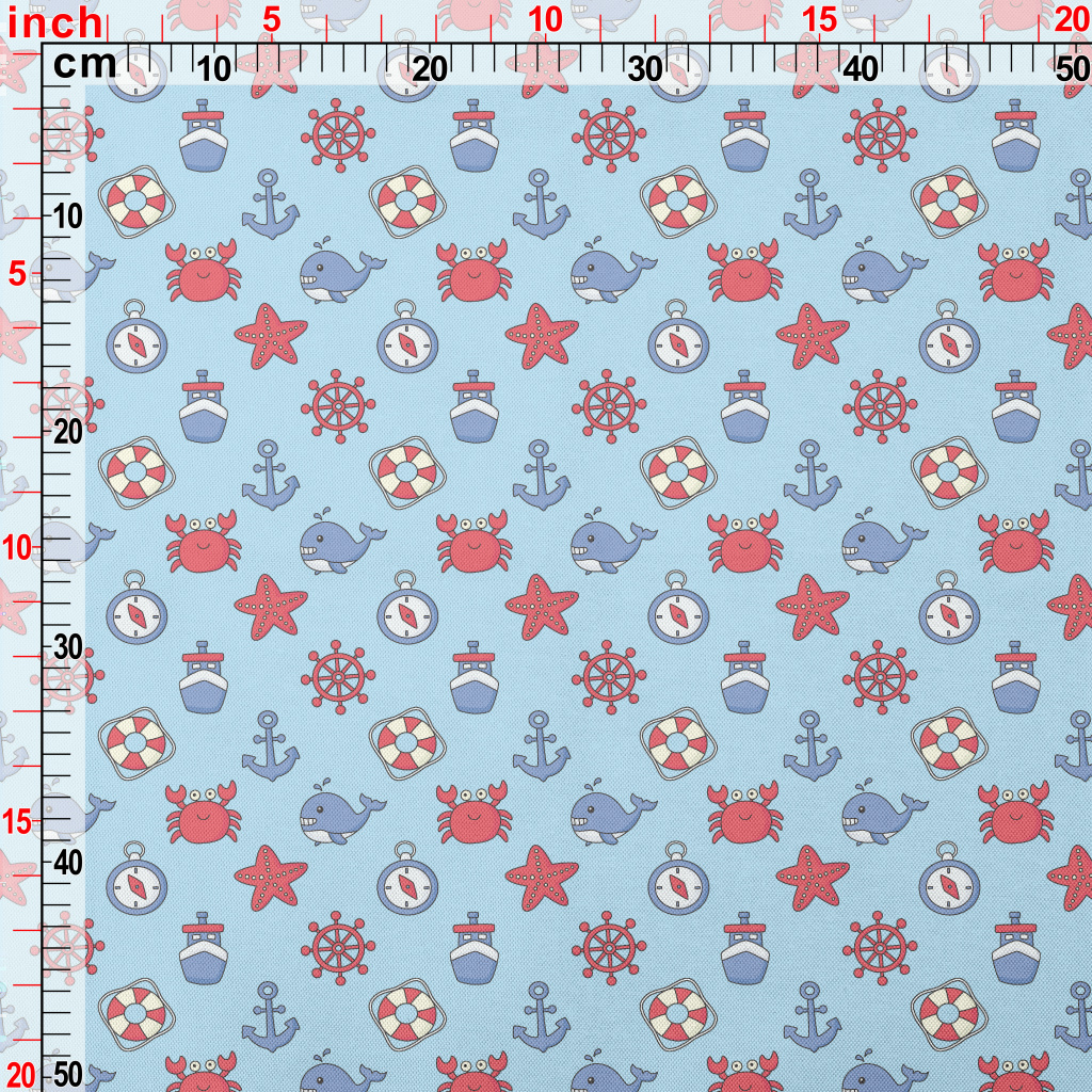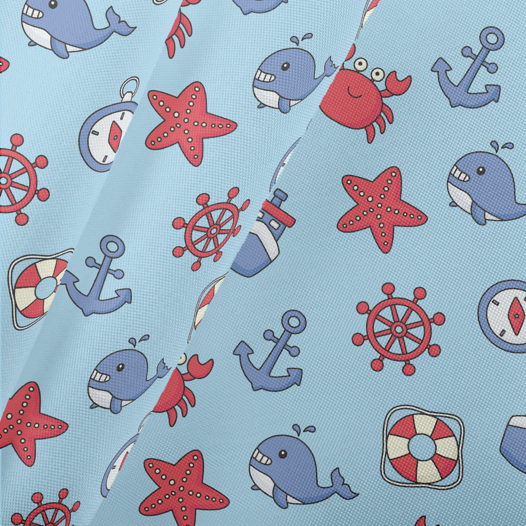 俏皮螃蟹與鯨魚春亞紡(幅寬160公分)