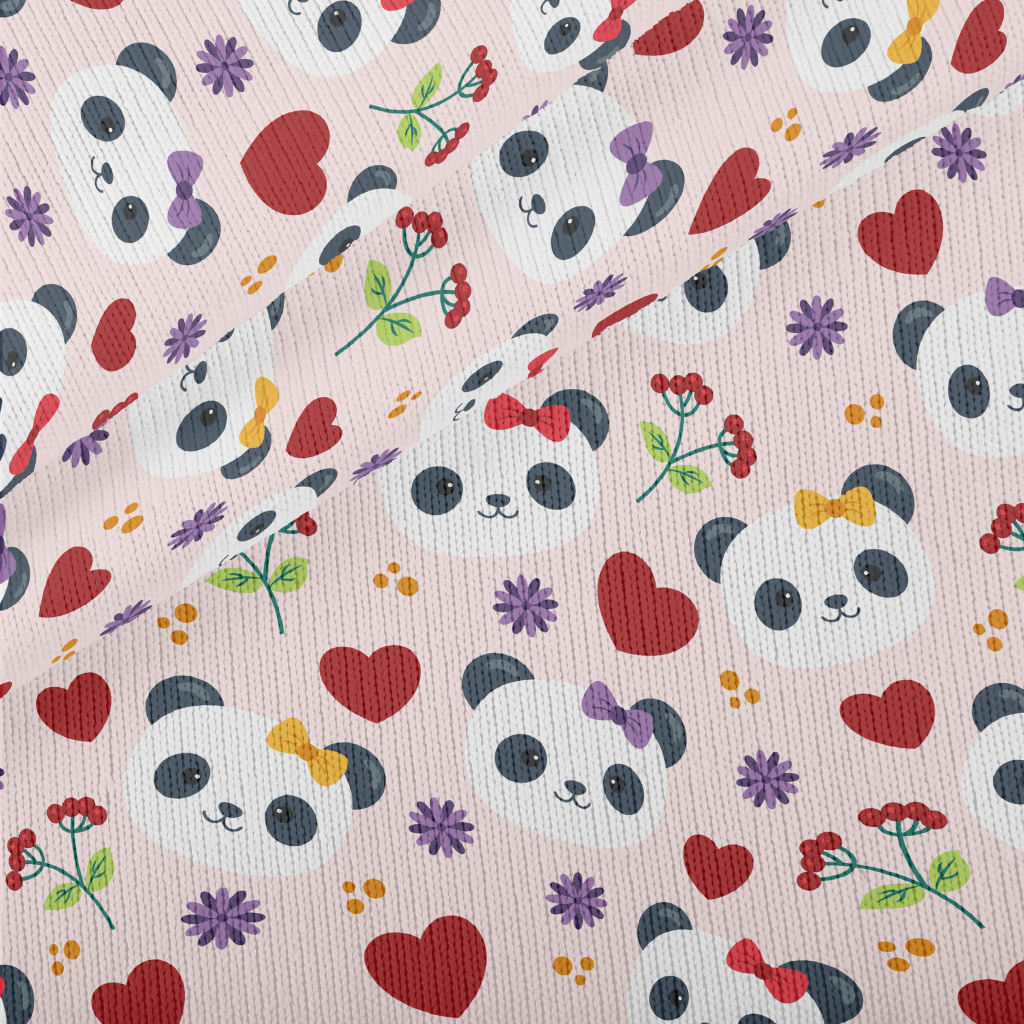 愛打扮蝴蝶結貓熊仿毛衣布(幅寬150公分)