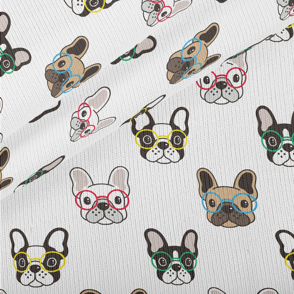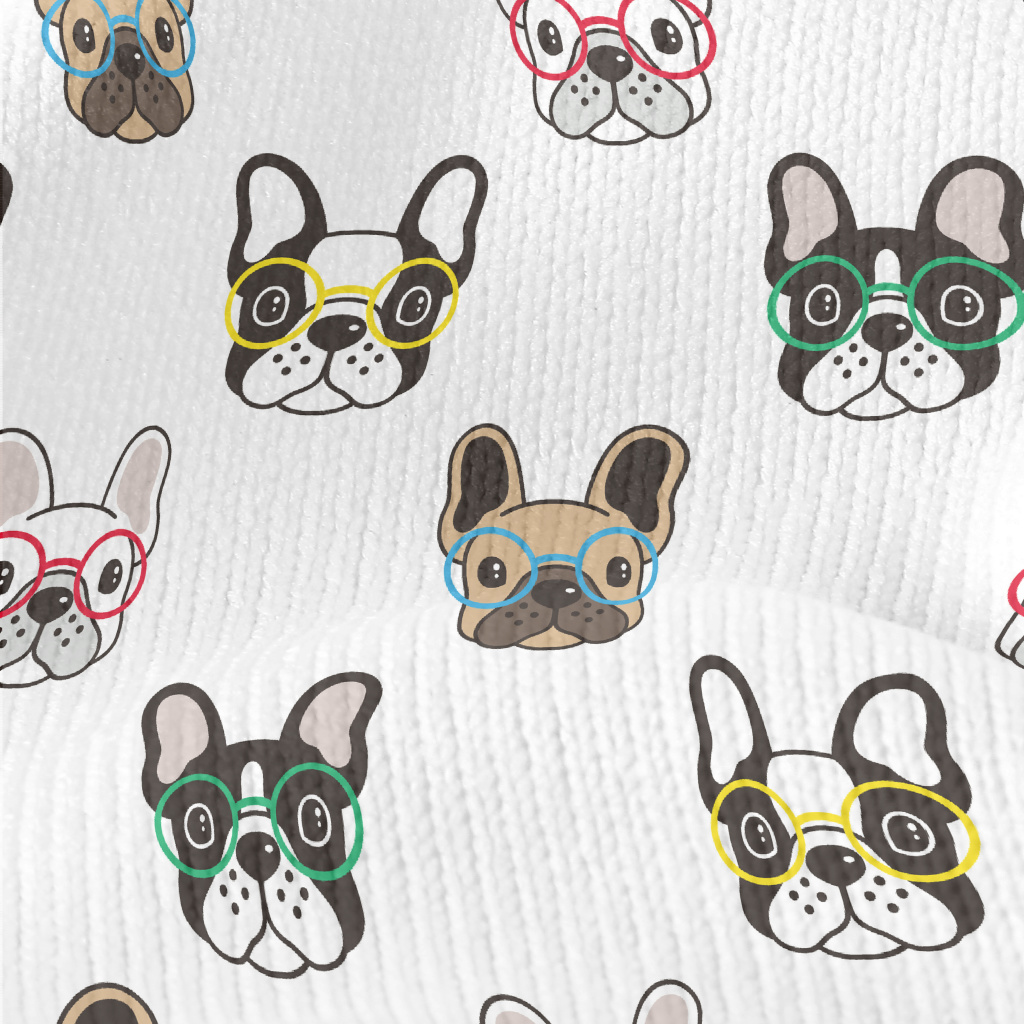 俏皮眼鏡鬥牛犬仿毛衣布(幅寬150公分)