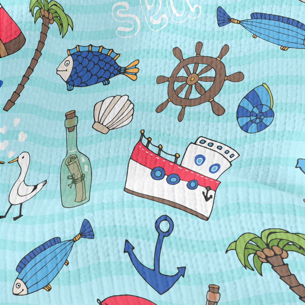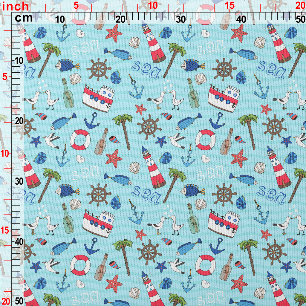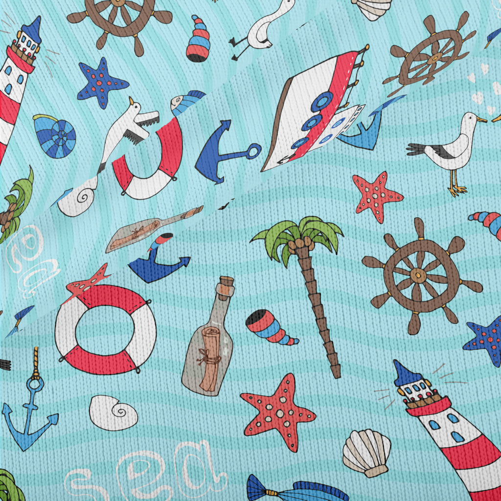 帆船燈塔海鷗魚仿毛衣布(幅寬150公分)