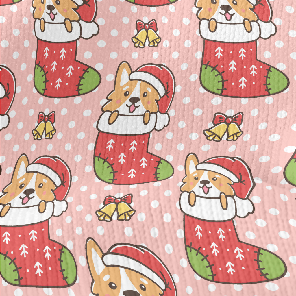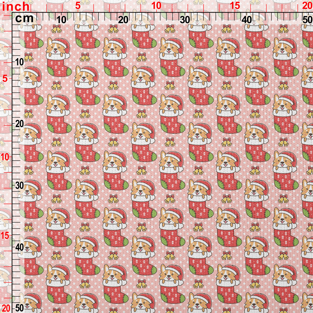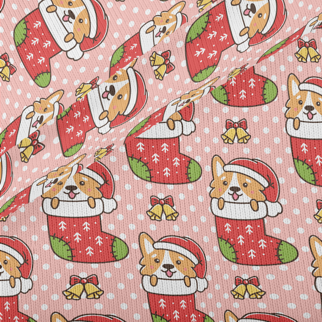 卡通柯基聖誕襪仿毛衣布(幅寬150公分)