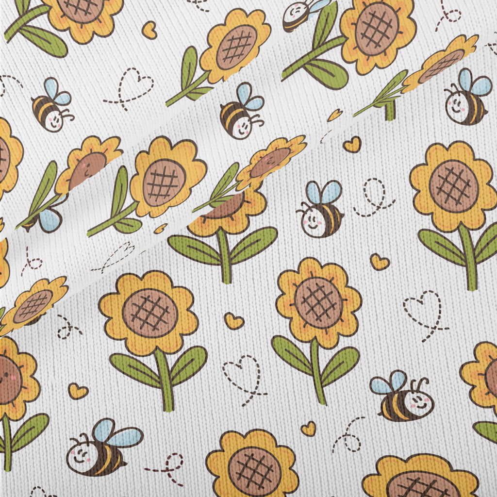 蜜蜂與向日葵仿毛衣布(幅寬150公分)