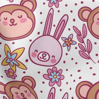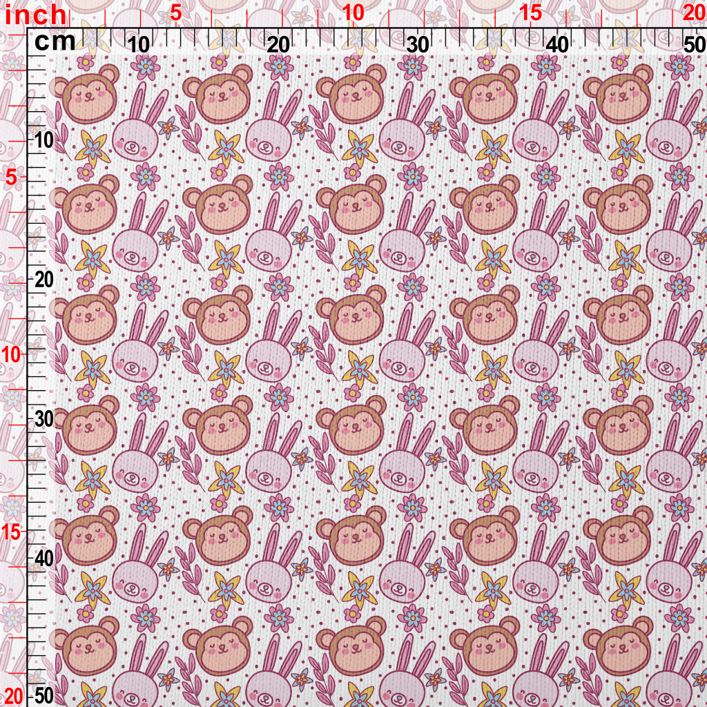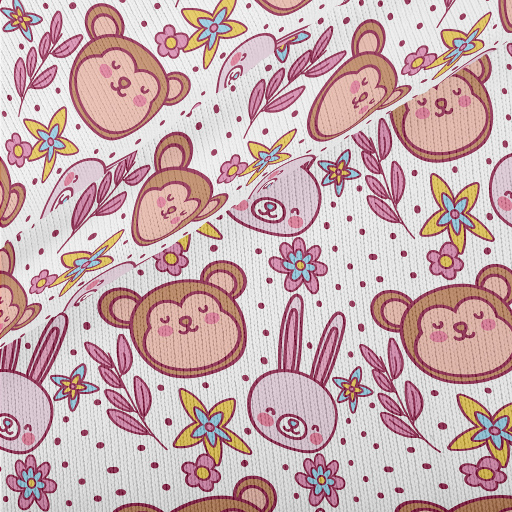 微笑兔子與猴子仿毛衣布(幅寬150公分)