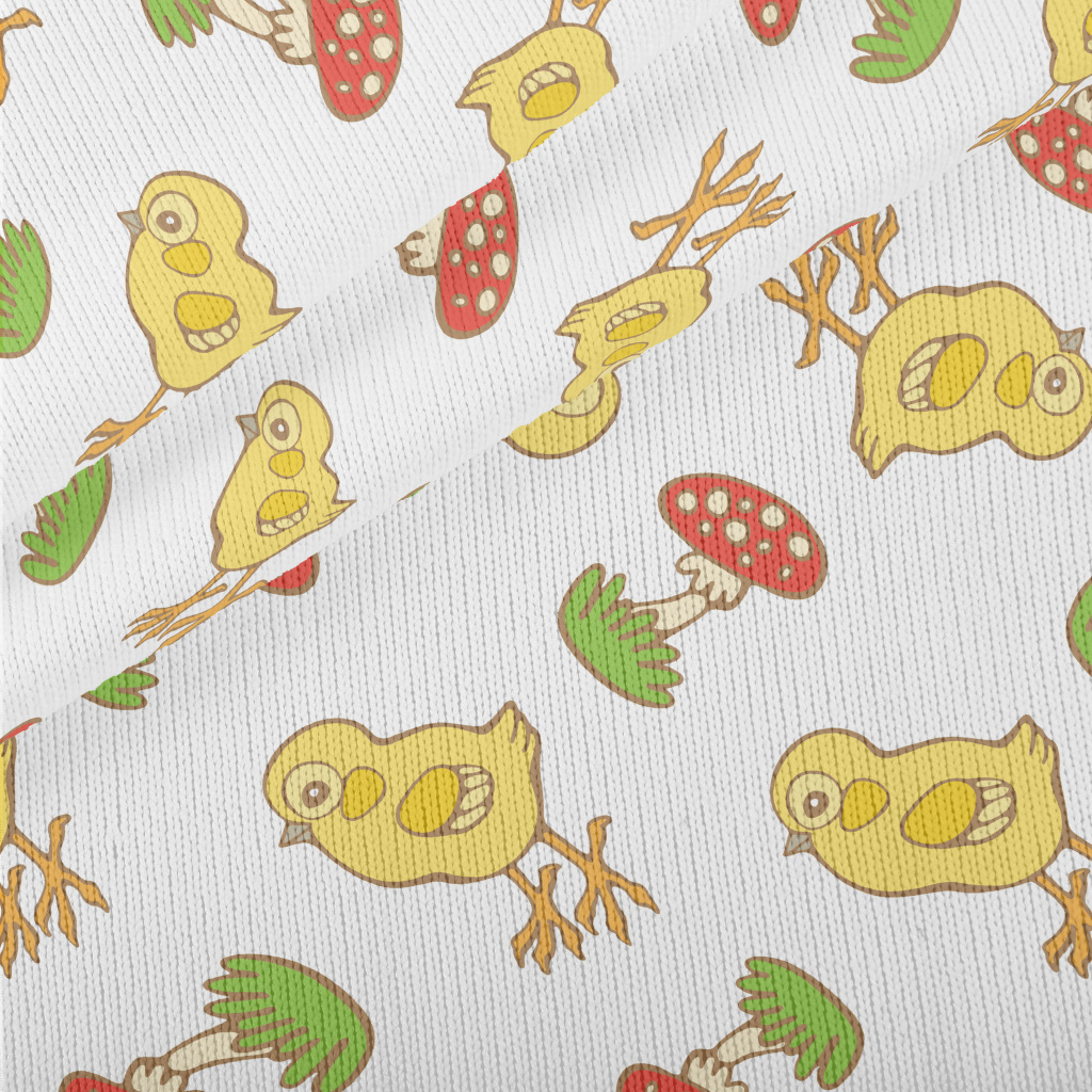 小雞與蘑菇仿毛衣布(幅寬150公分)