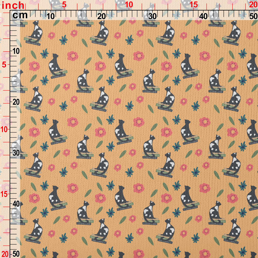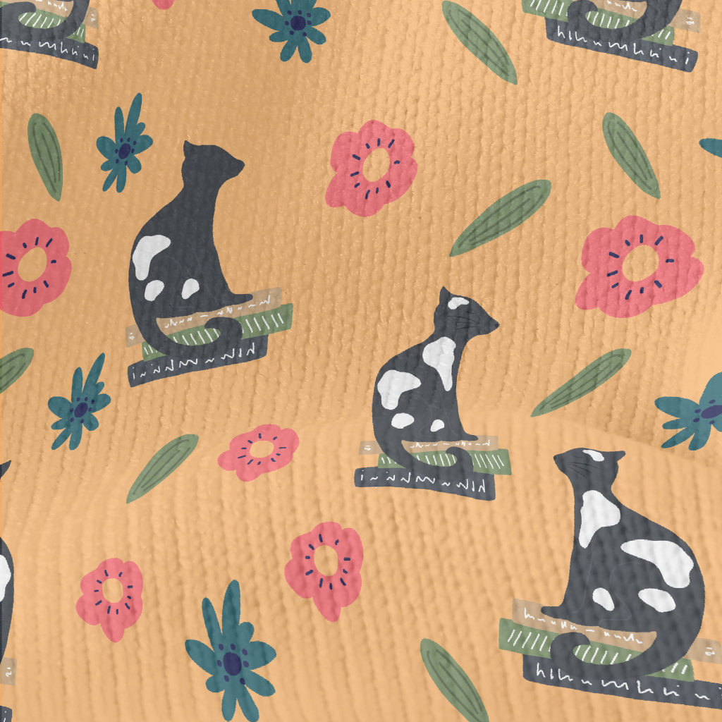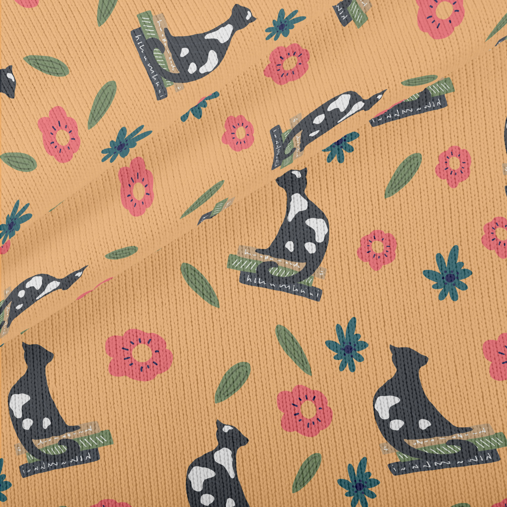 優雅貓與花朵仿毛衣布(幅寬150公分)