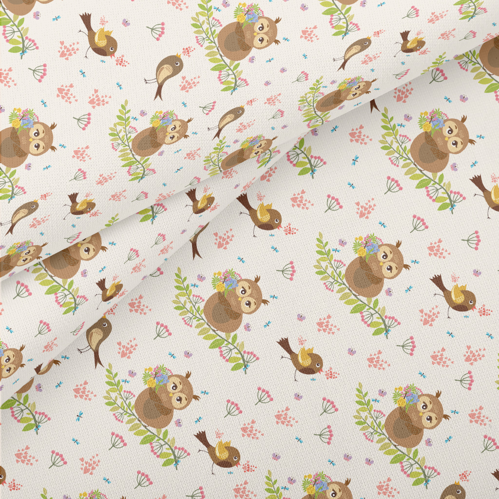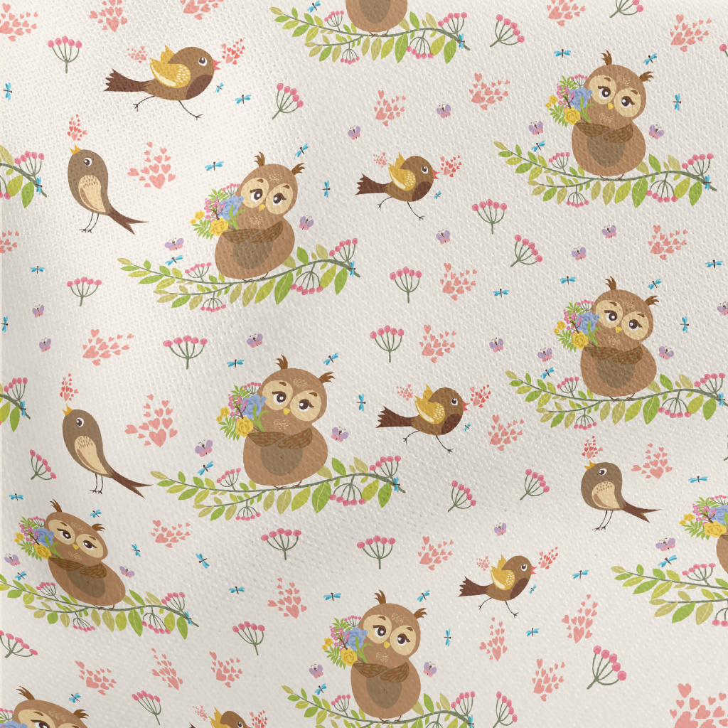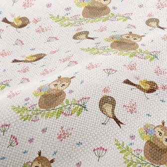 貓頭鷹與小鳥薄棉布(幅寬150公分)