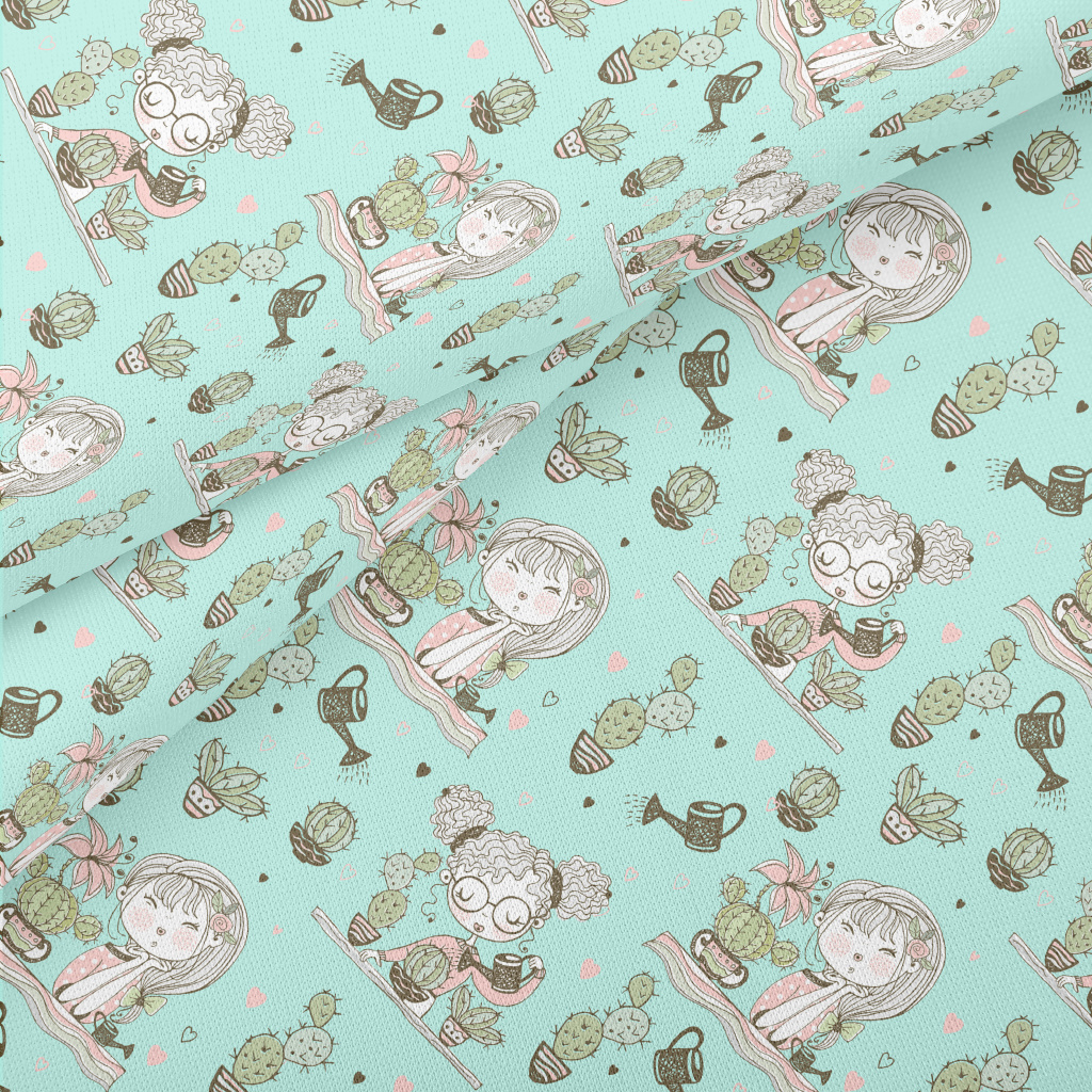 女孩種植仙人掌薄棉布(幅寬150公分)