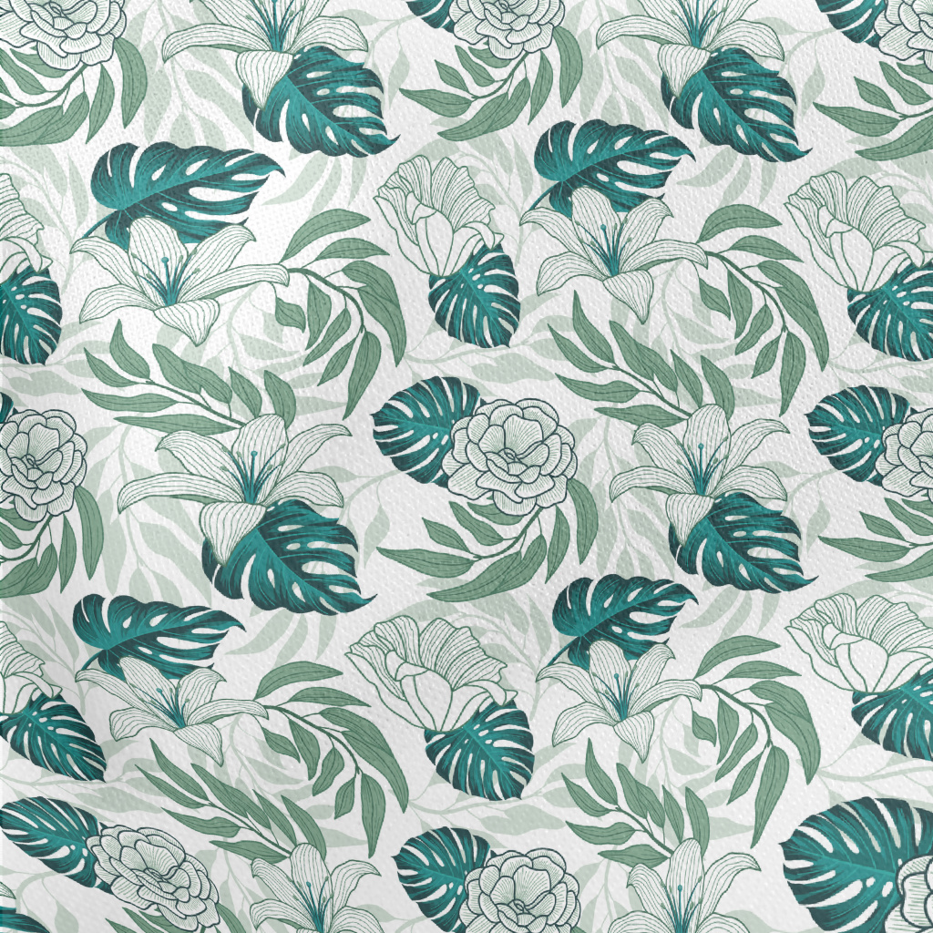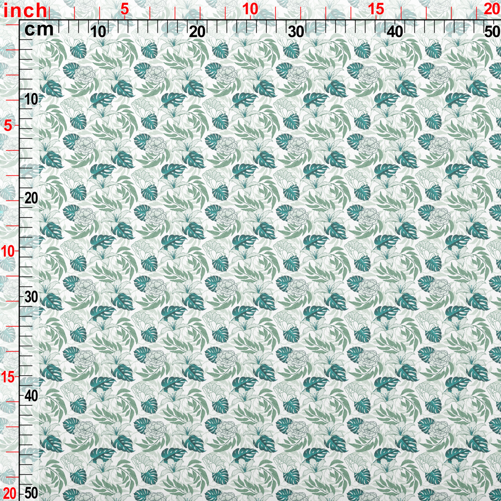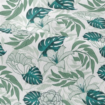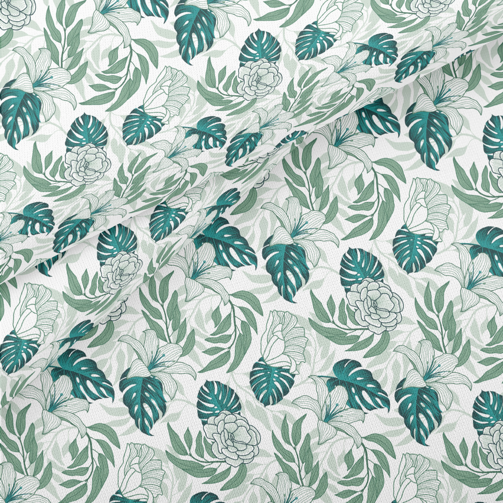 熱帶花朵與葉子薄棉布(幅寬150公分)