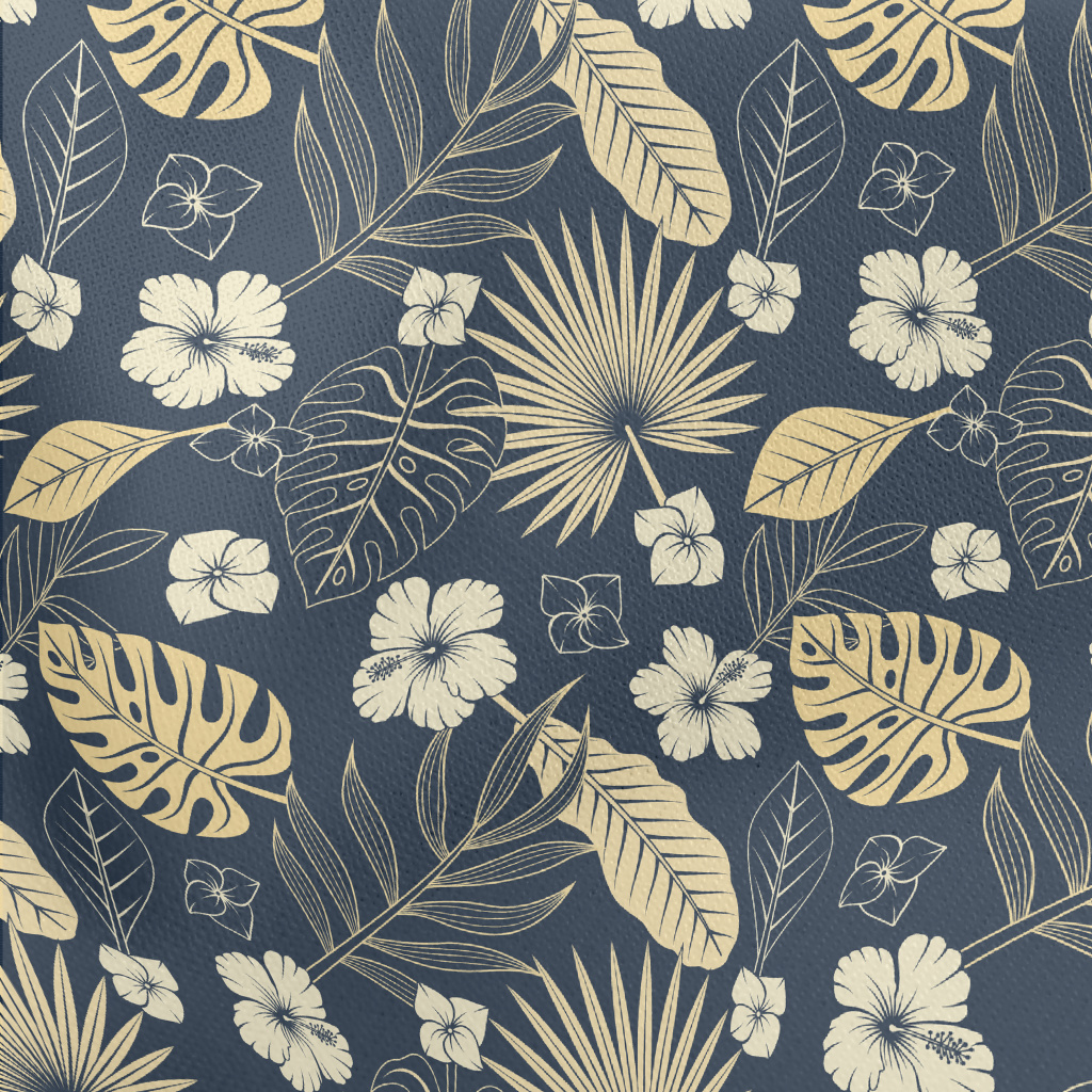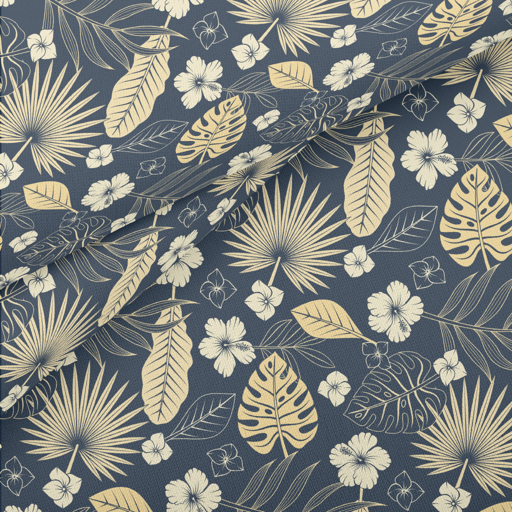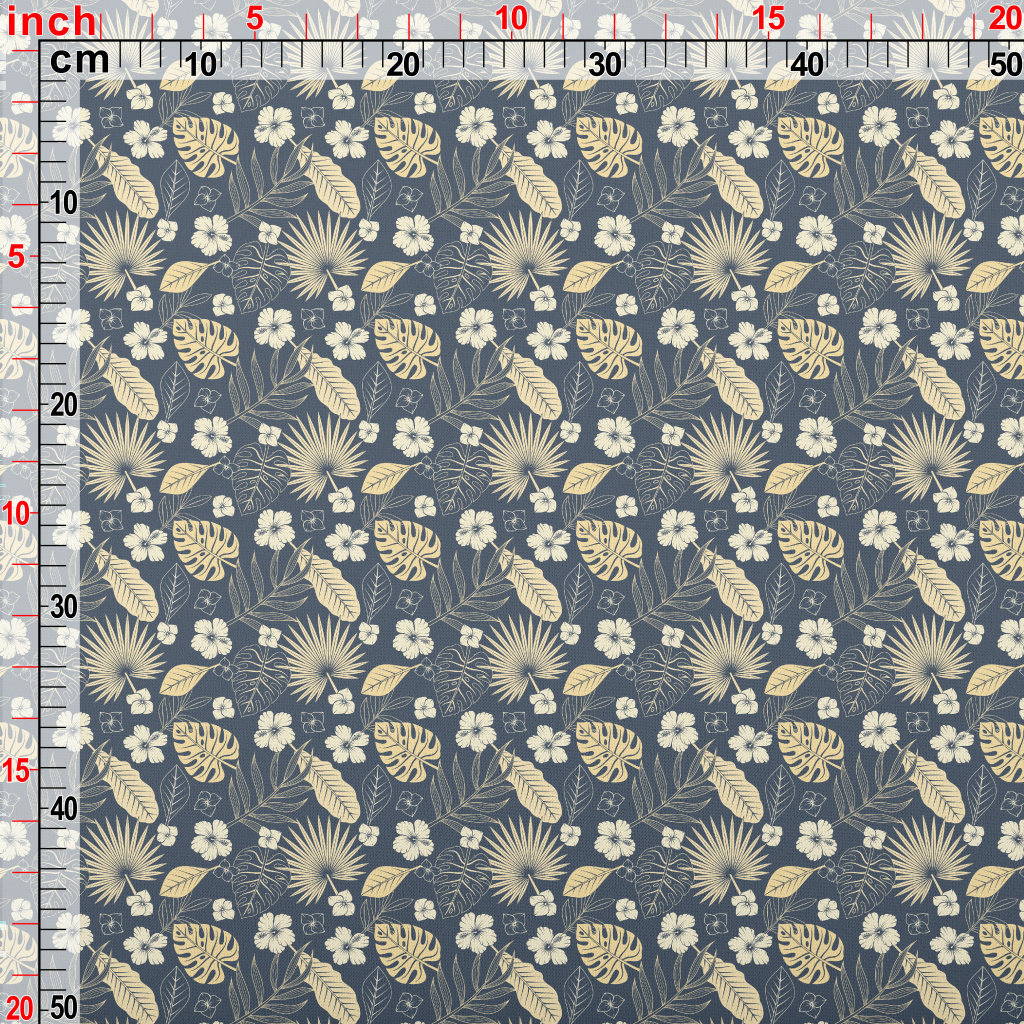 優雅熱帶樹葉花朵薄棉布(幅寬150公分)