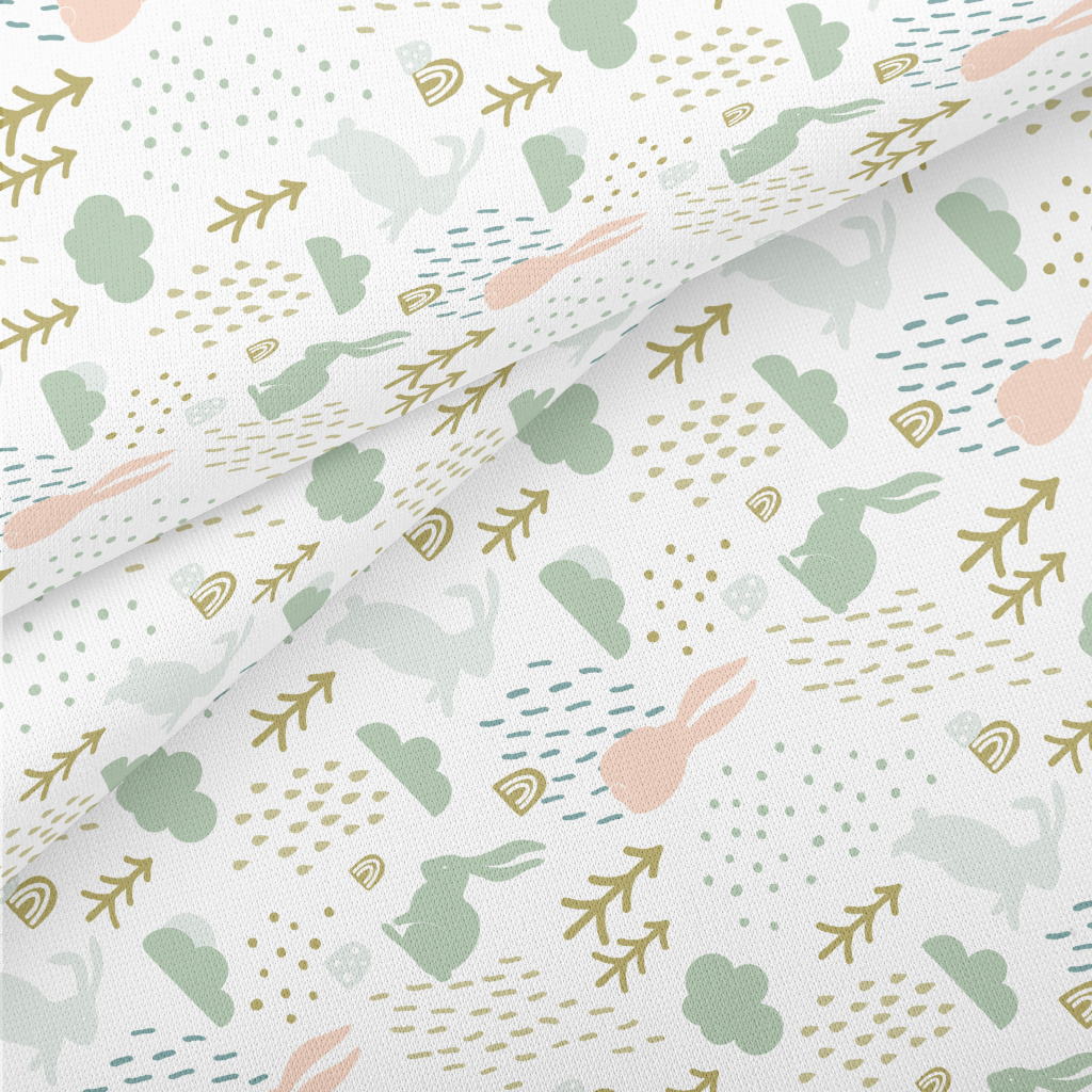 玩耍兔子剪影薄棉布(幅寬150公分)
