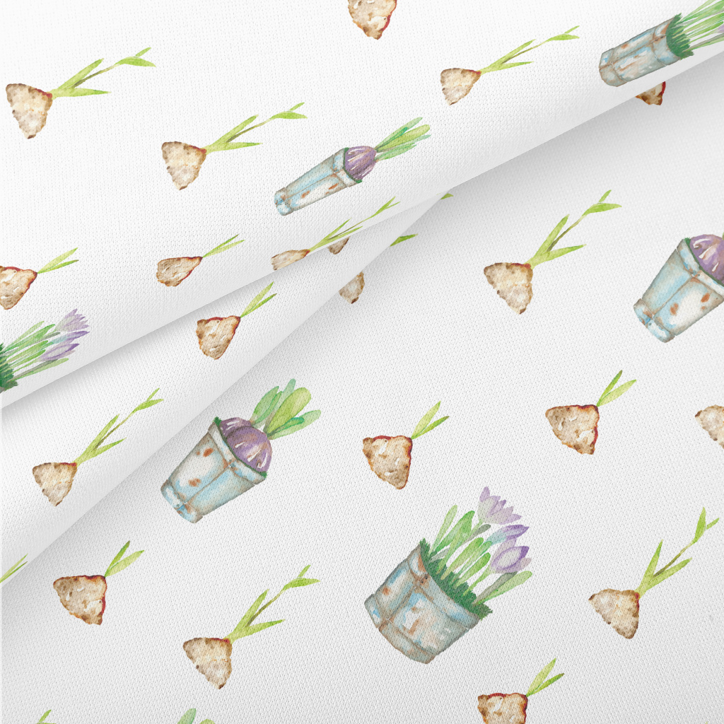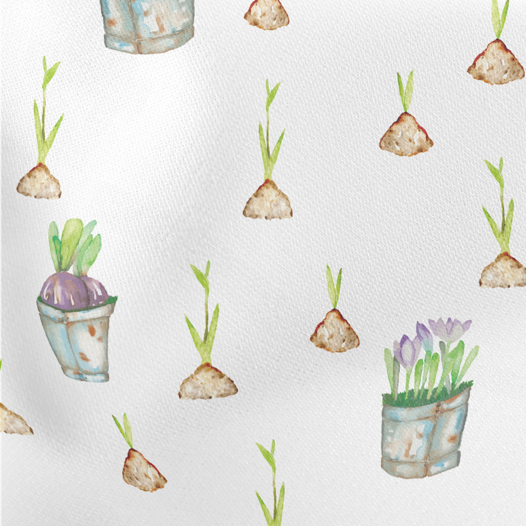 水彩植物發芽圖薄棉布(幅寬150公分)