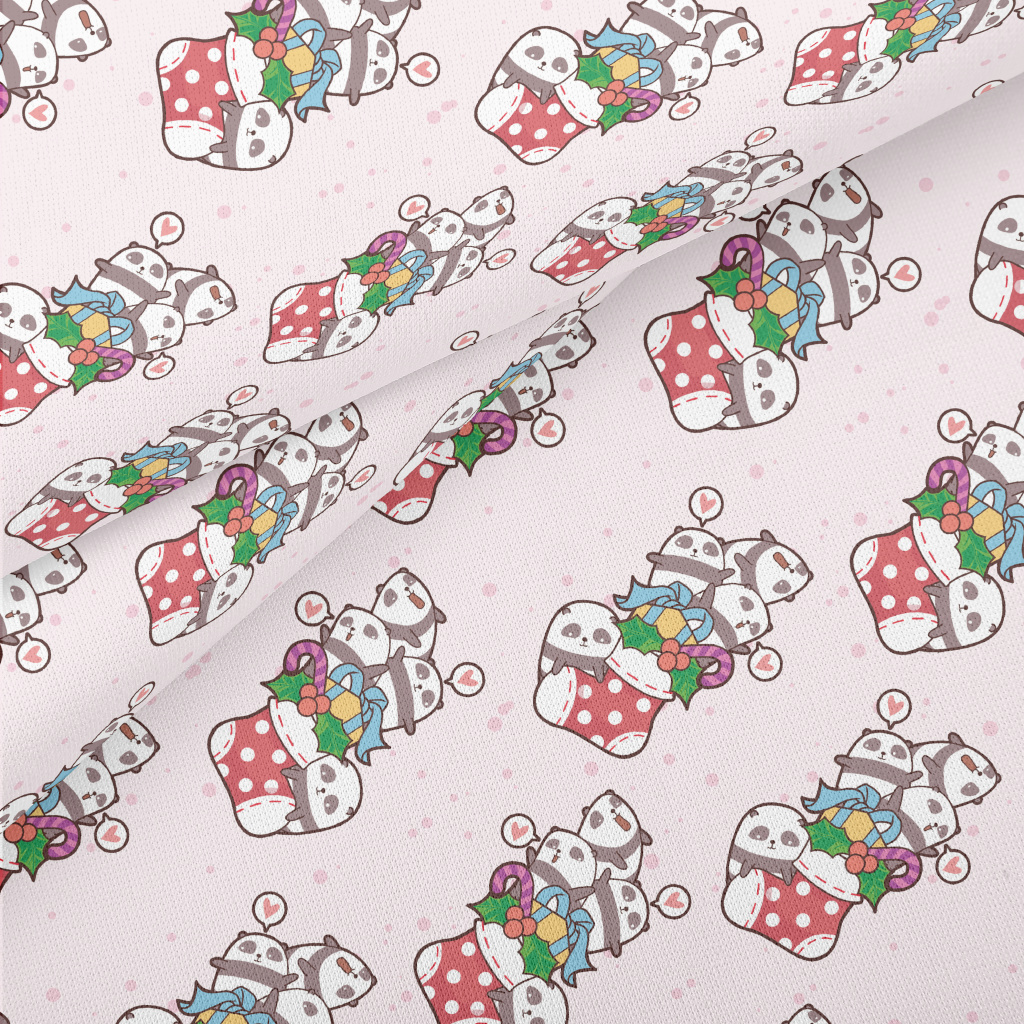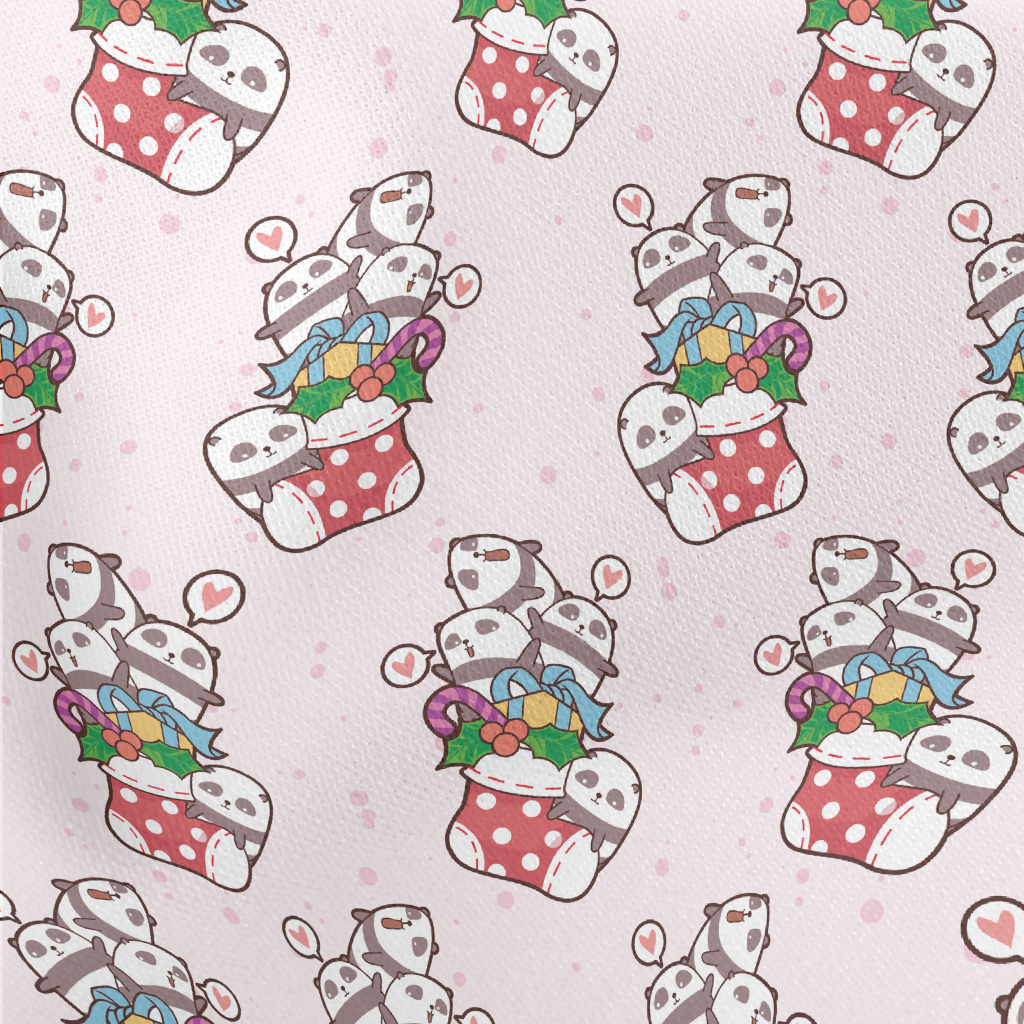 歡樂貓熊聖誕襪薄棉布(幅寬150公分)