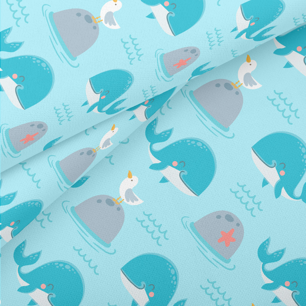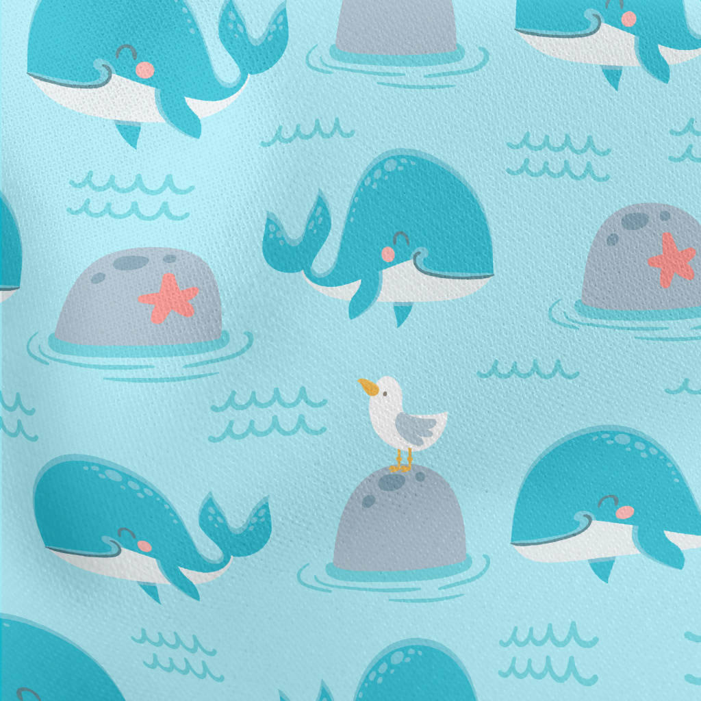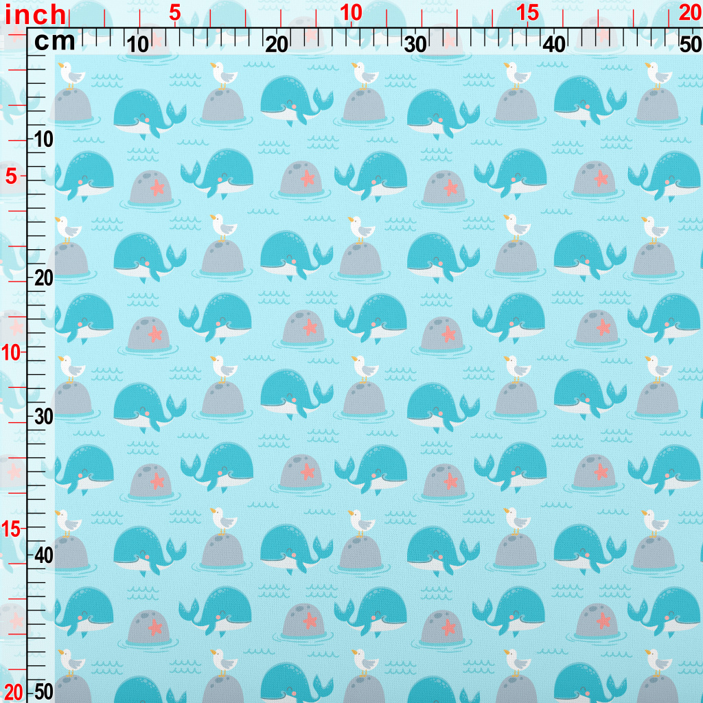 活潑鯨魚與海鷗薄棉布(幅寬150公分)