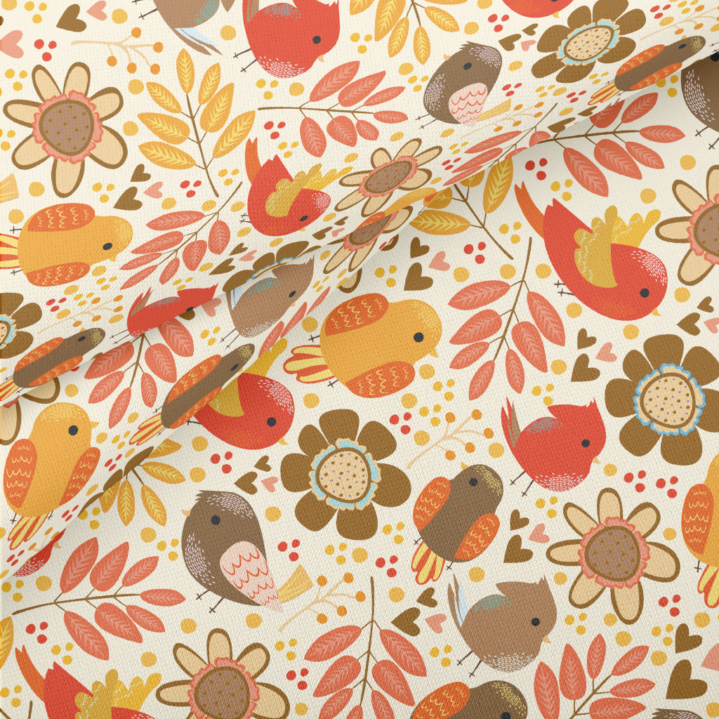 秋天豐收小鳥薄棉布(幅寬150公分)