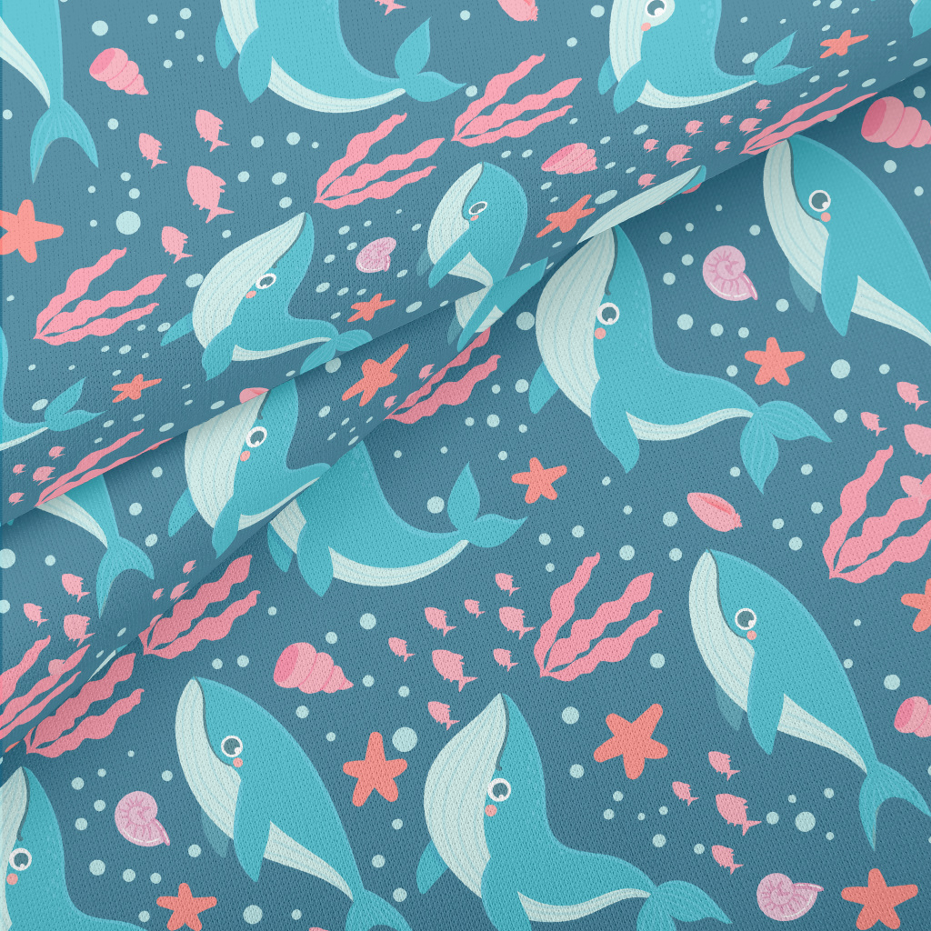 遨遊大海鯨魚薄棉布(幅寬150公分)