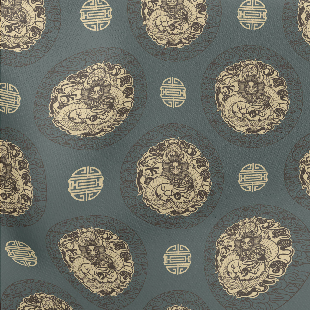 古代神獸神龍薄棉布(幅寬150公分)