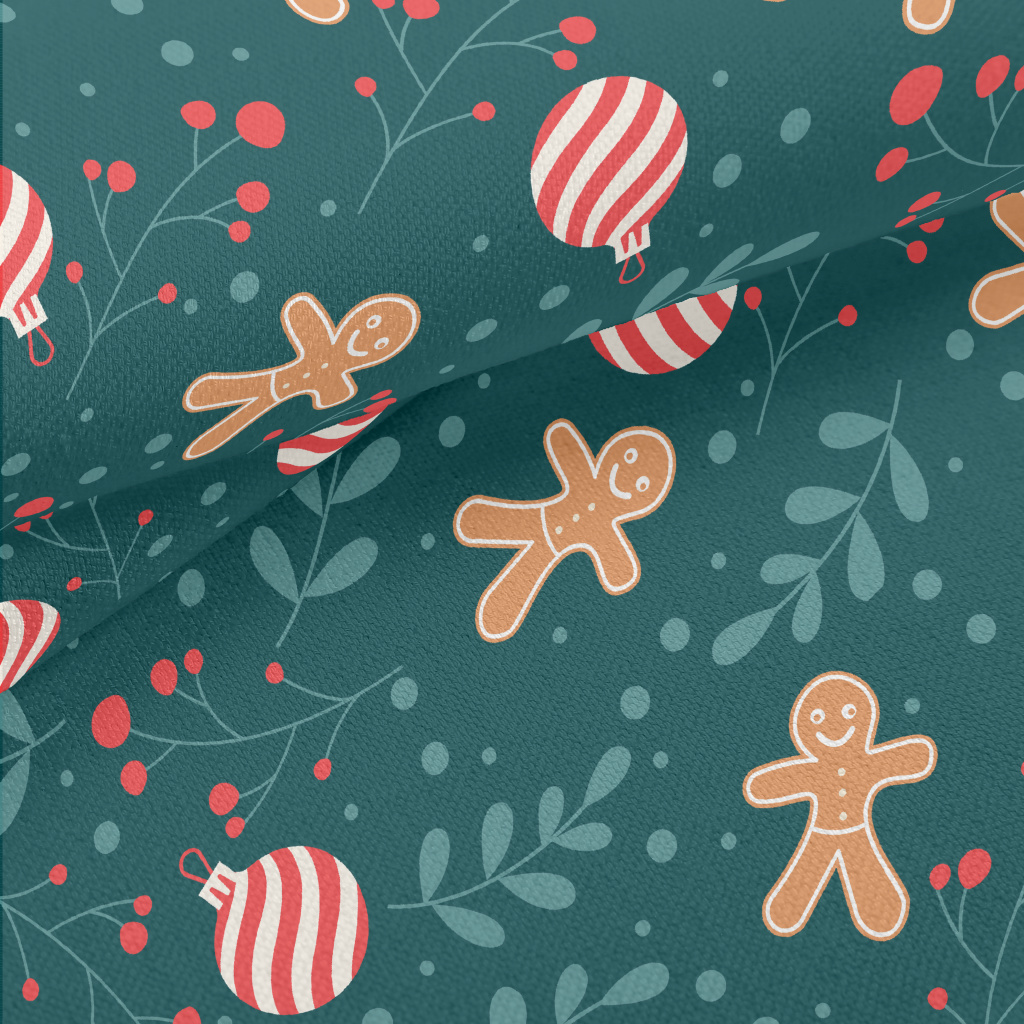 聖誕樹薑餅裝飾球竹節麻(幅寬150公分)