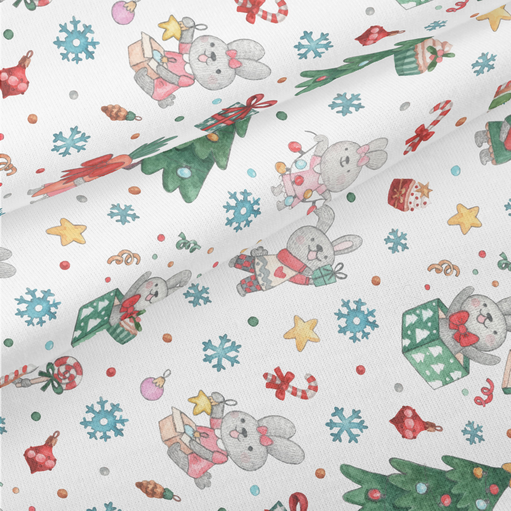 兔子家族過聖誕仿棉布(幅寬150公分)