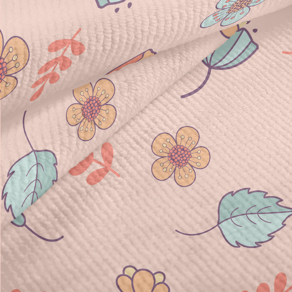 俏麗菊花朵葉子毛巾布(幅寬160公分)