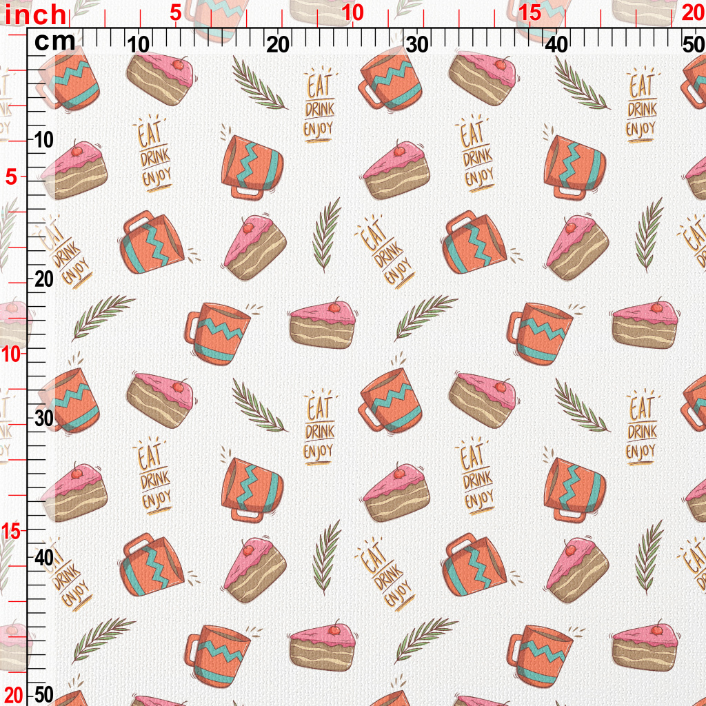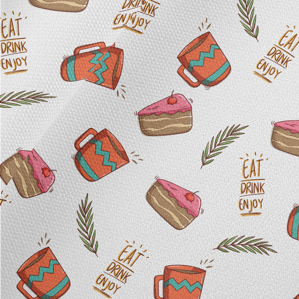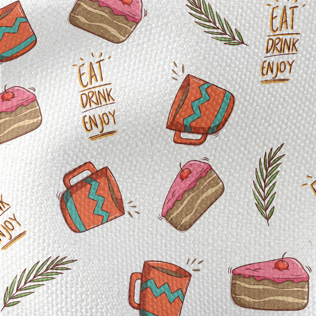 櫻桃蛋糕配熱茶帆布(幅寬150公分)
