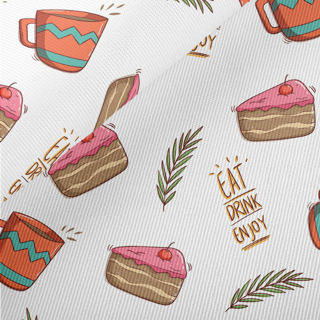 櫻桃蛋糕配熱茶斜紋布(幅寬150公分)