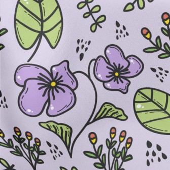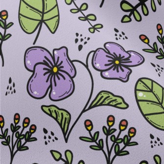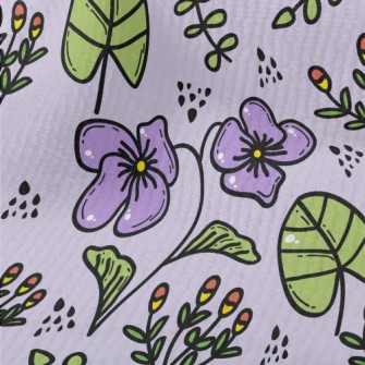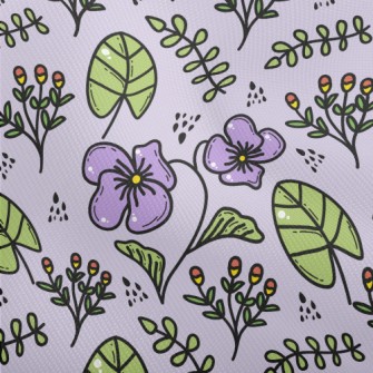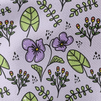 俏皮花朵與樹葉斜紋布(幅寬150公分)