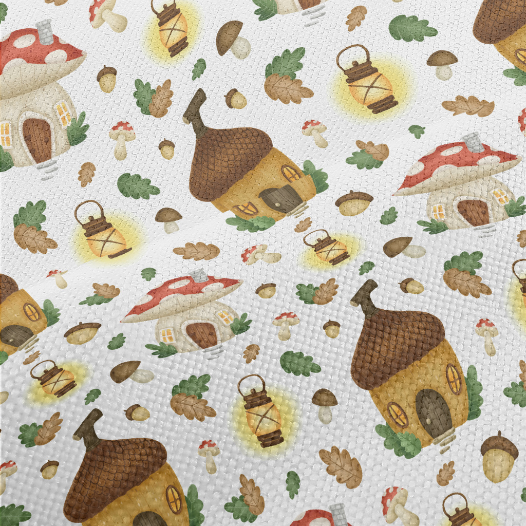 蘑菇榛果造型房屋麻布(幅寬150公分)