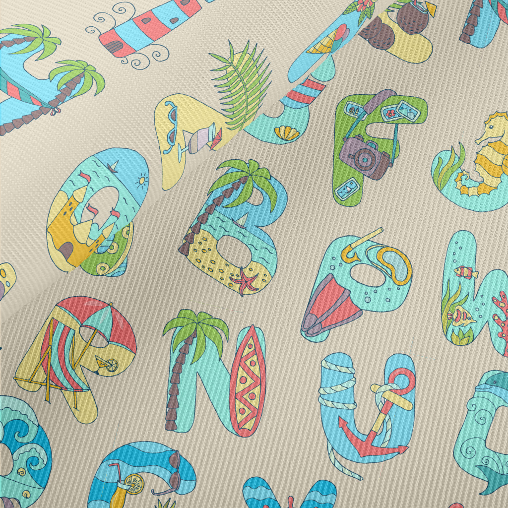 海灘風格英文字母厚棉布(幅寬150公分)