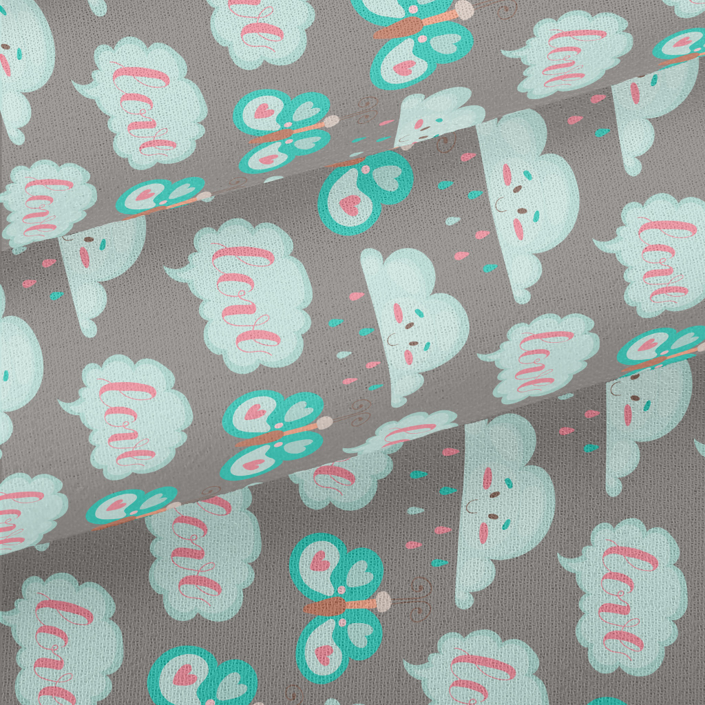 卡通蝴蝶與雲朵雪紡布(幅寬150公分)