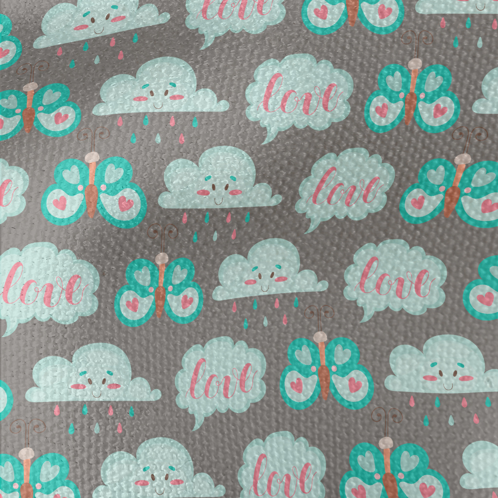 卡通蝴蝶與雲朵帆布(幅寬150公分)