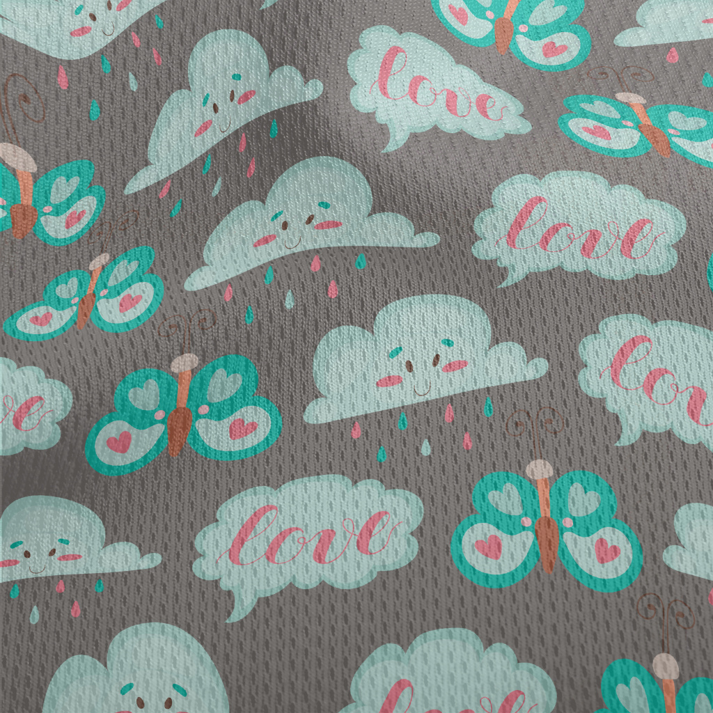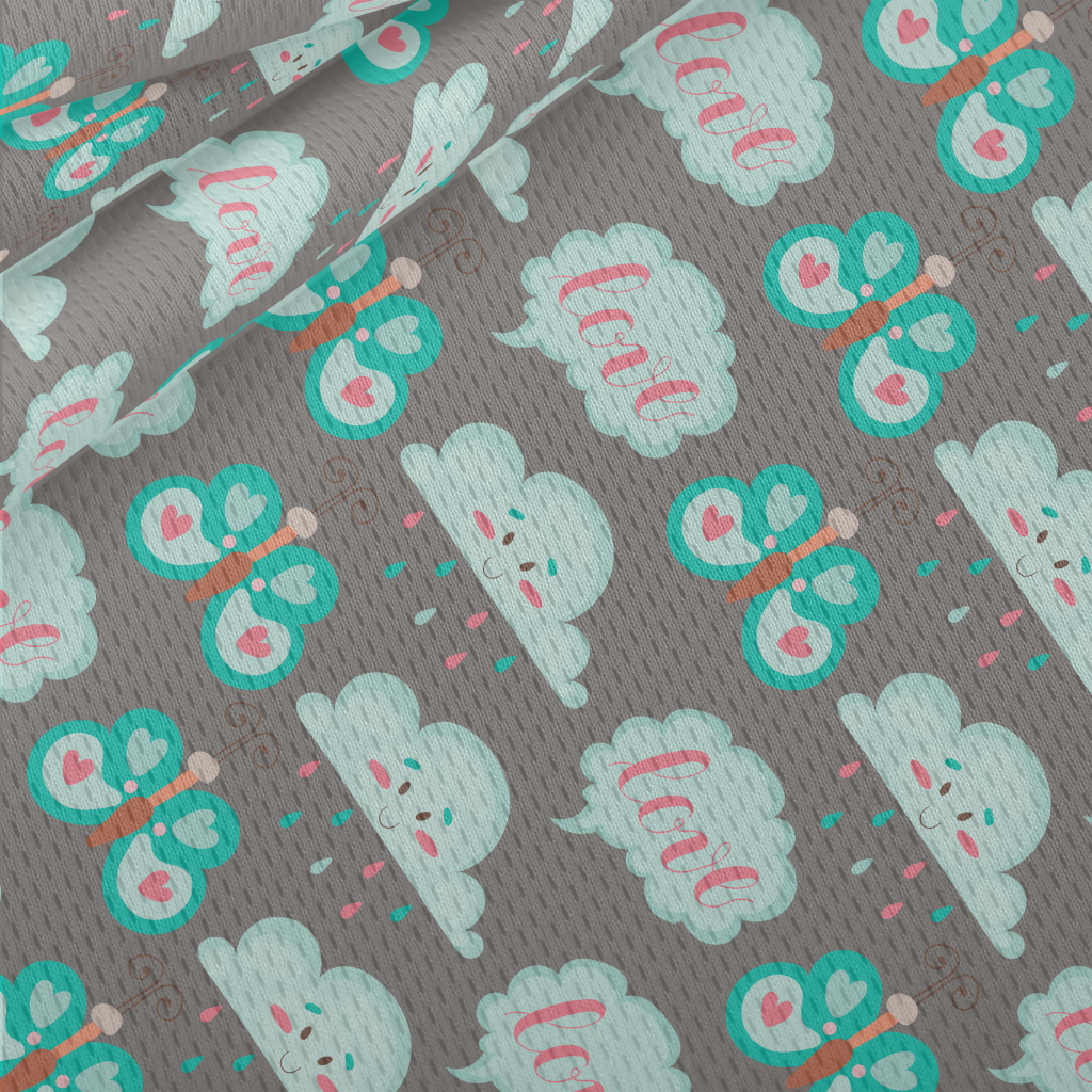 卡通蝴蝶與雲朵鳥眼布(幅寬160公分)