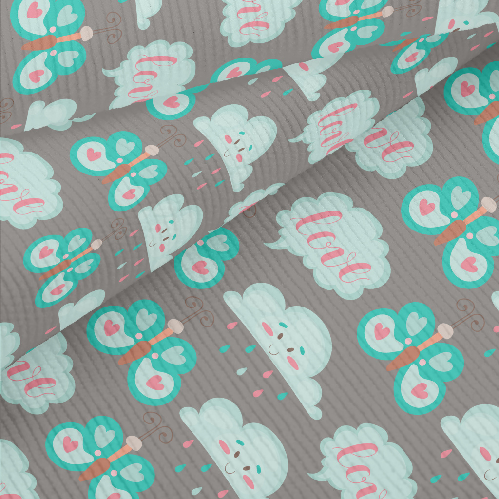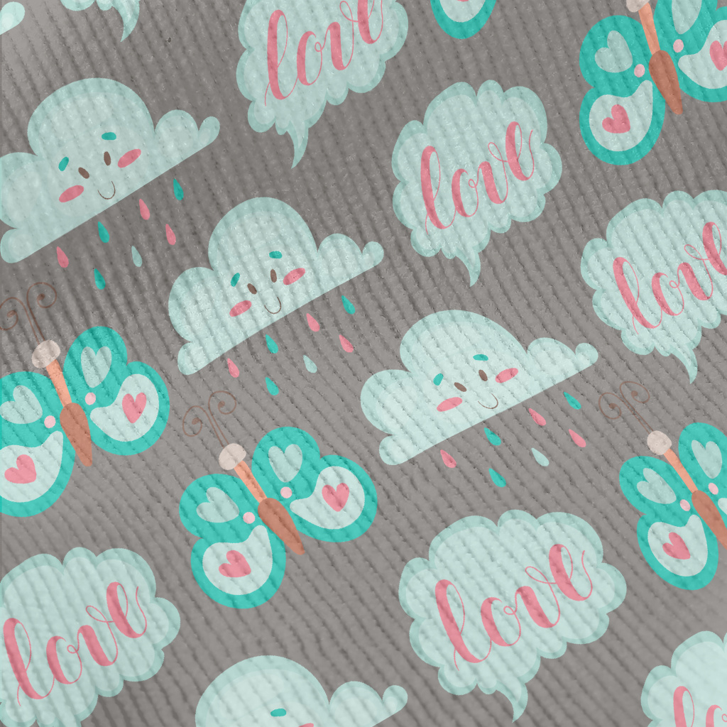 卡通蝴蝶與雲朵燈芯絨(幅寬150公分)