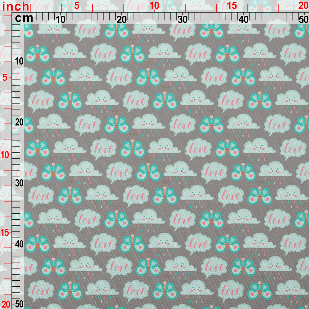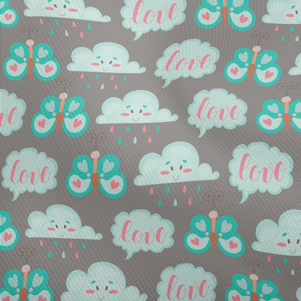 卡通蝴蝶與雲朵雙斜布(幅寬150公分)