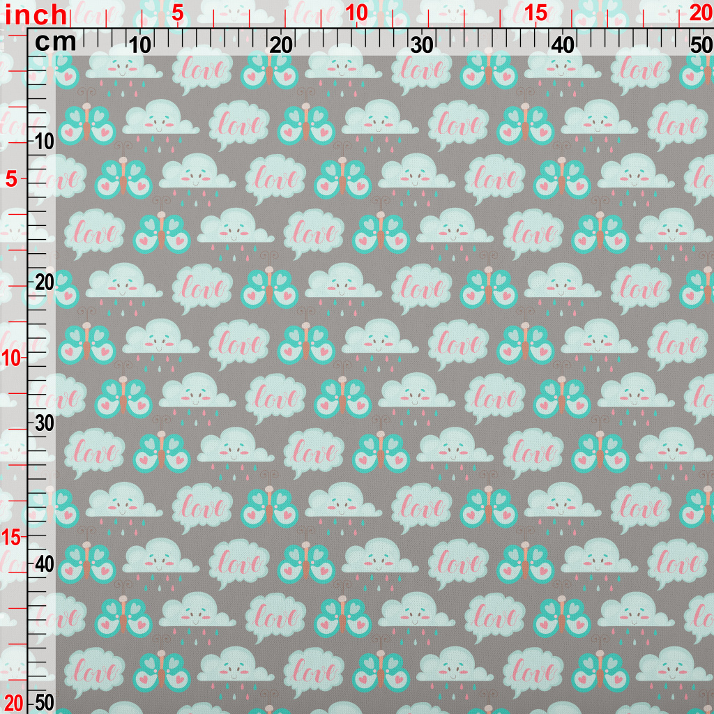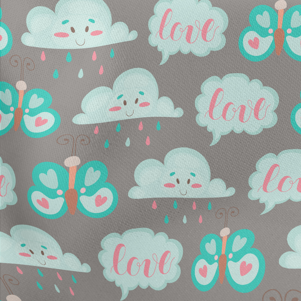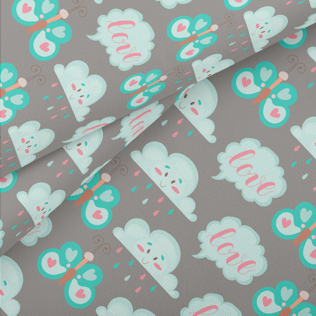 卡通蝴蝶與雲朵羅馬布(幅寬160公分)