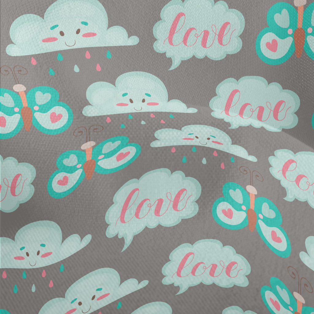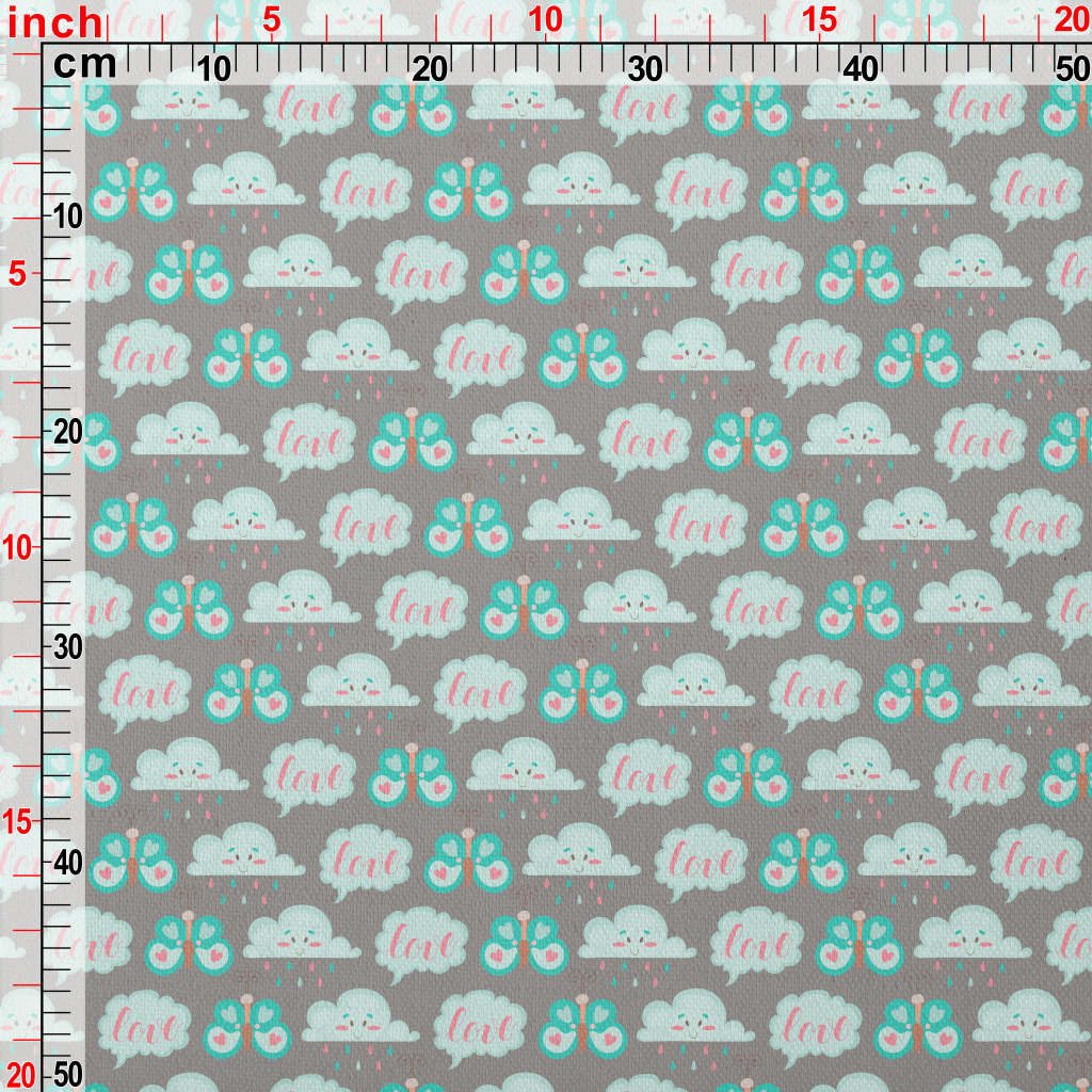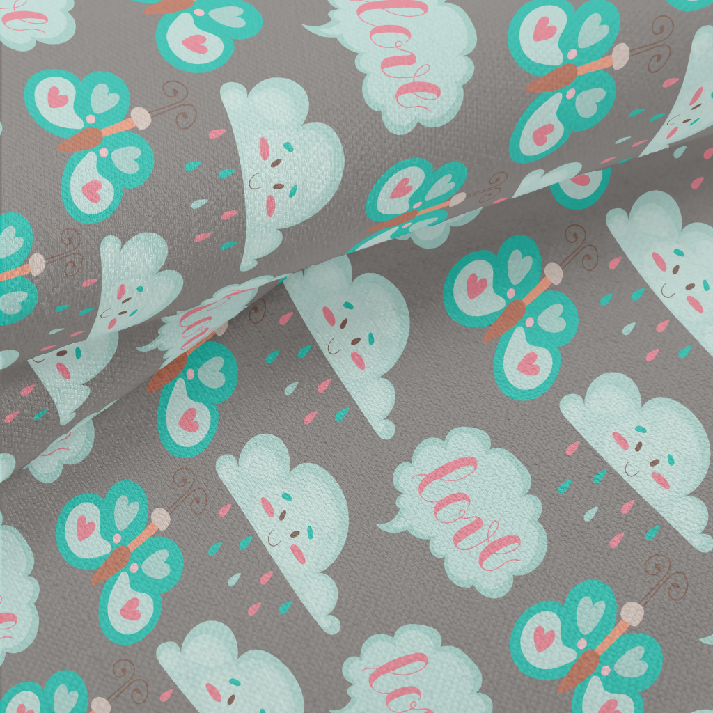 卡通蝴蝶與雲朵竹節麻(幅寬150公分)